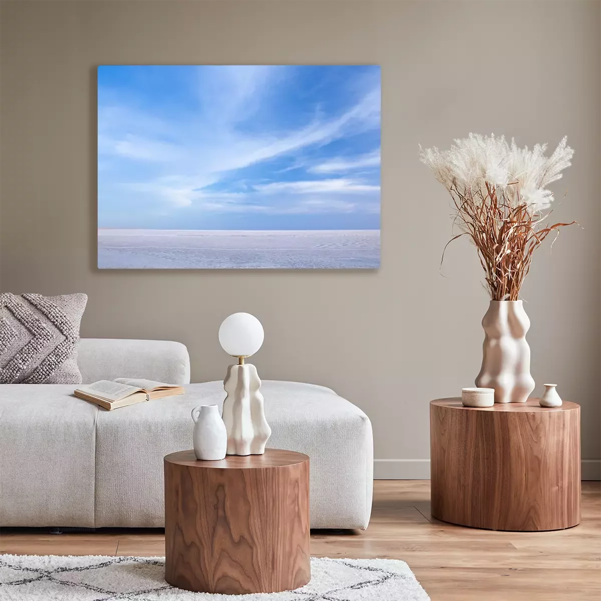 De print wordt aangebracht op hoogwaardig canvas dat op een schildersweefgetouw (spieraam) wordt gespannen. Omdat de print de zijranden bedekt, hoeft het ontwerp niet met een extra kader te worden omlijst. Wij raden ook composities aan die uit meerdere foto's bestaan en zo een coherente compositie vormen.