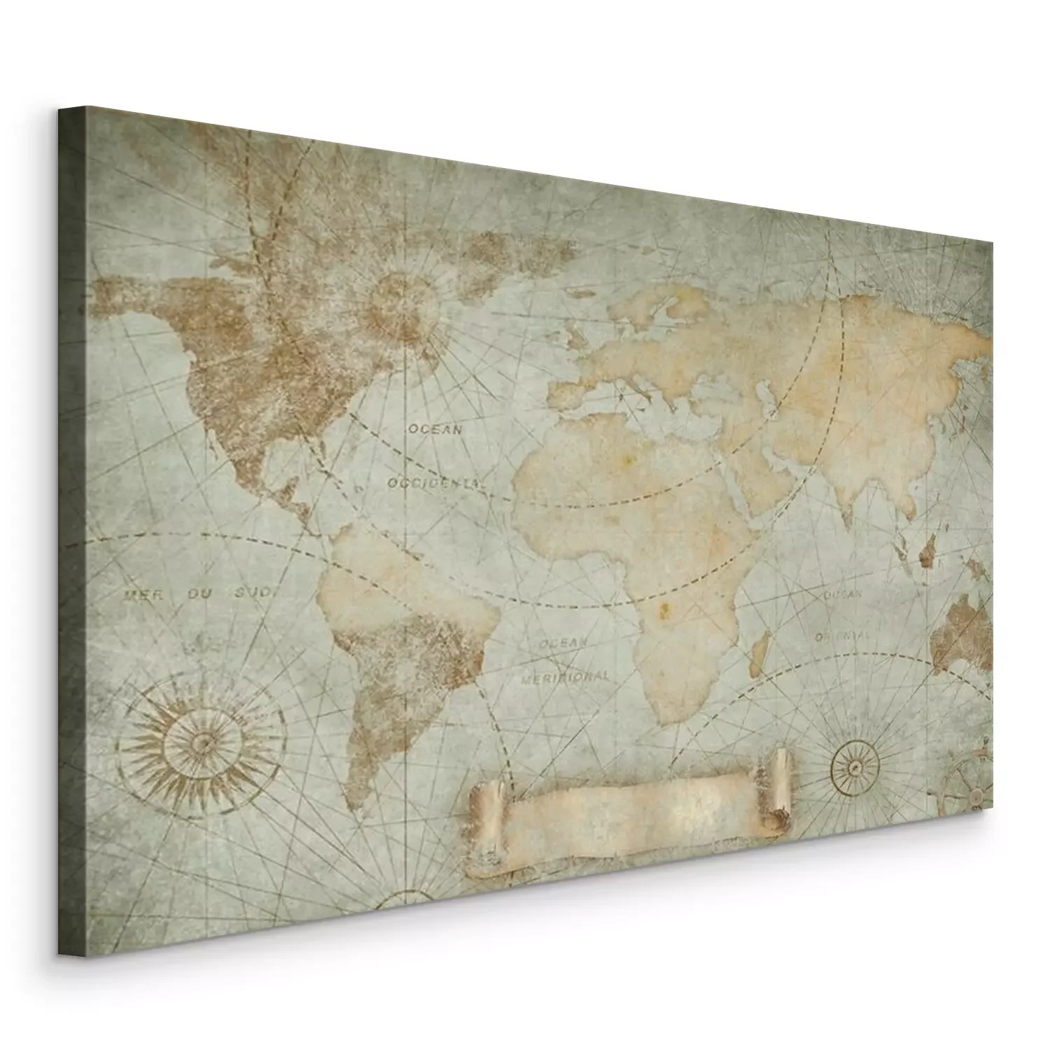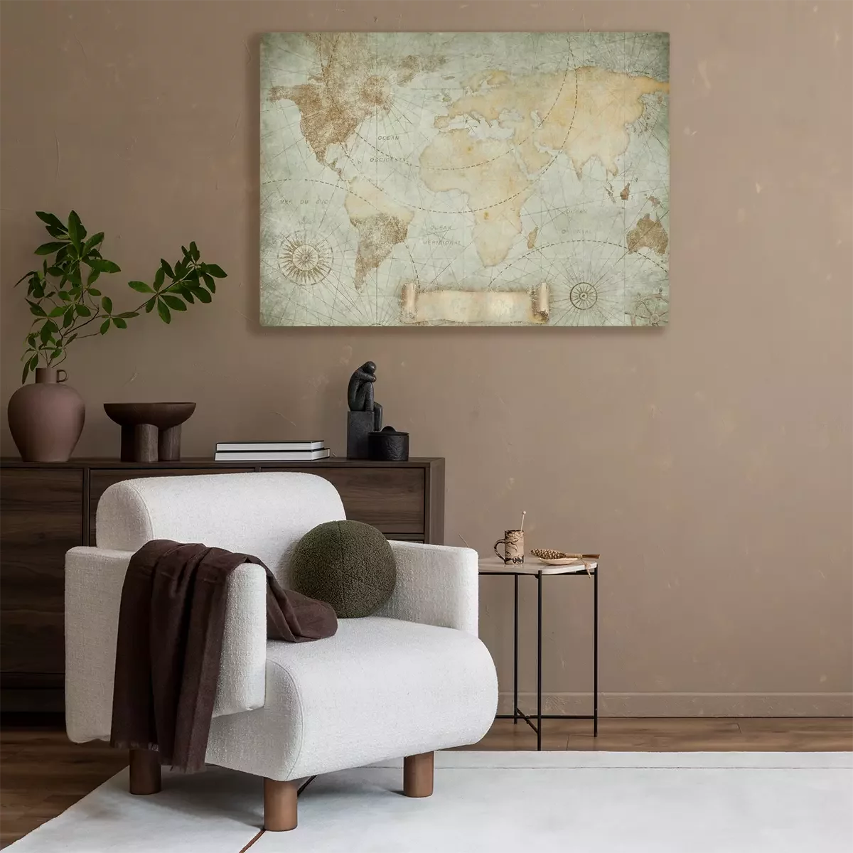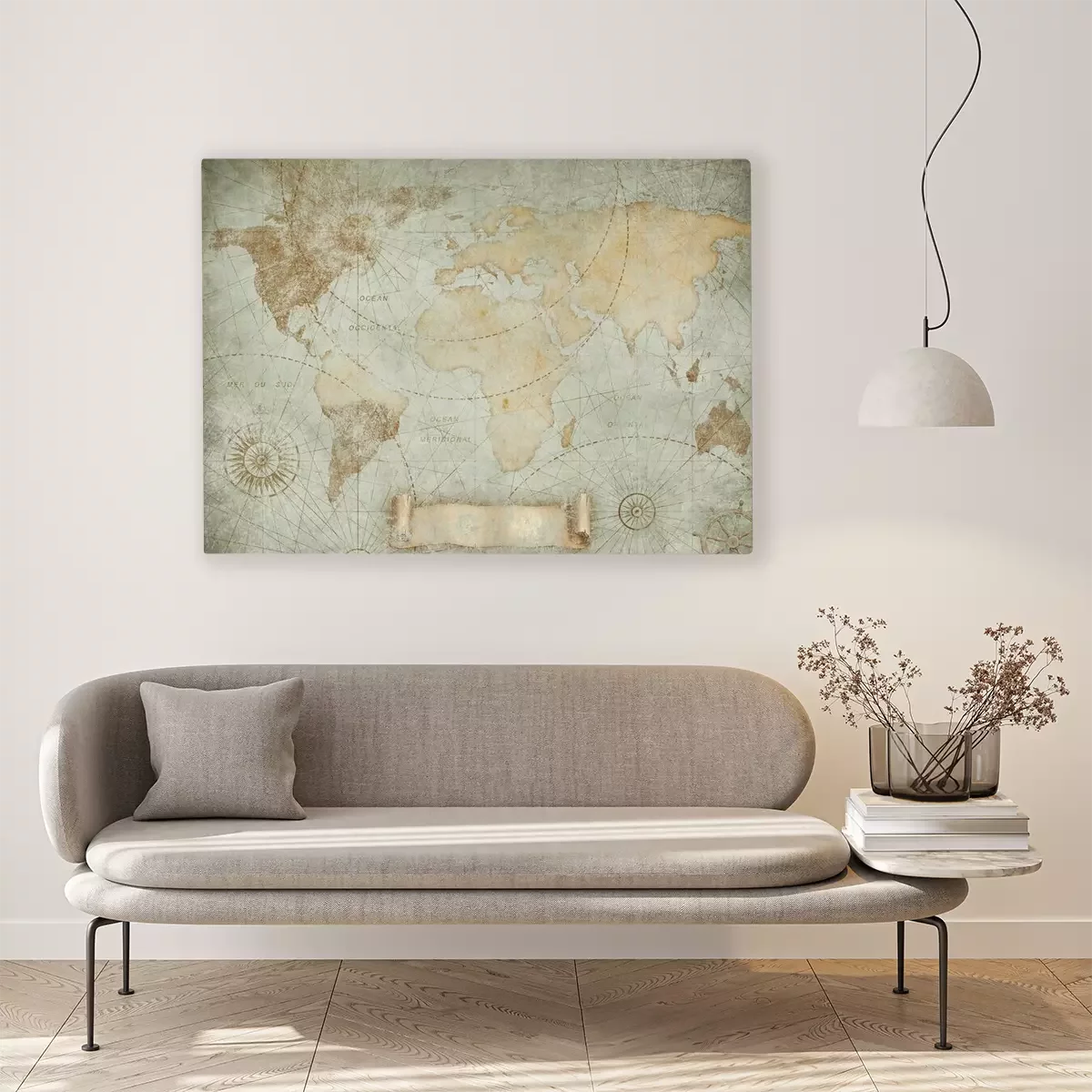 Canvas: Blue vintage world map illustration based on image furnished by NASA
