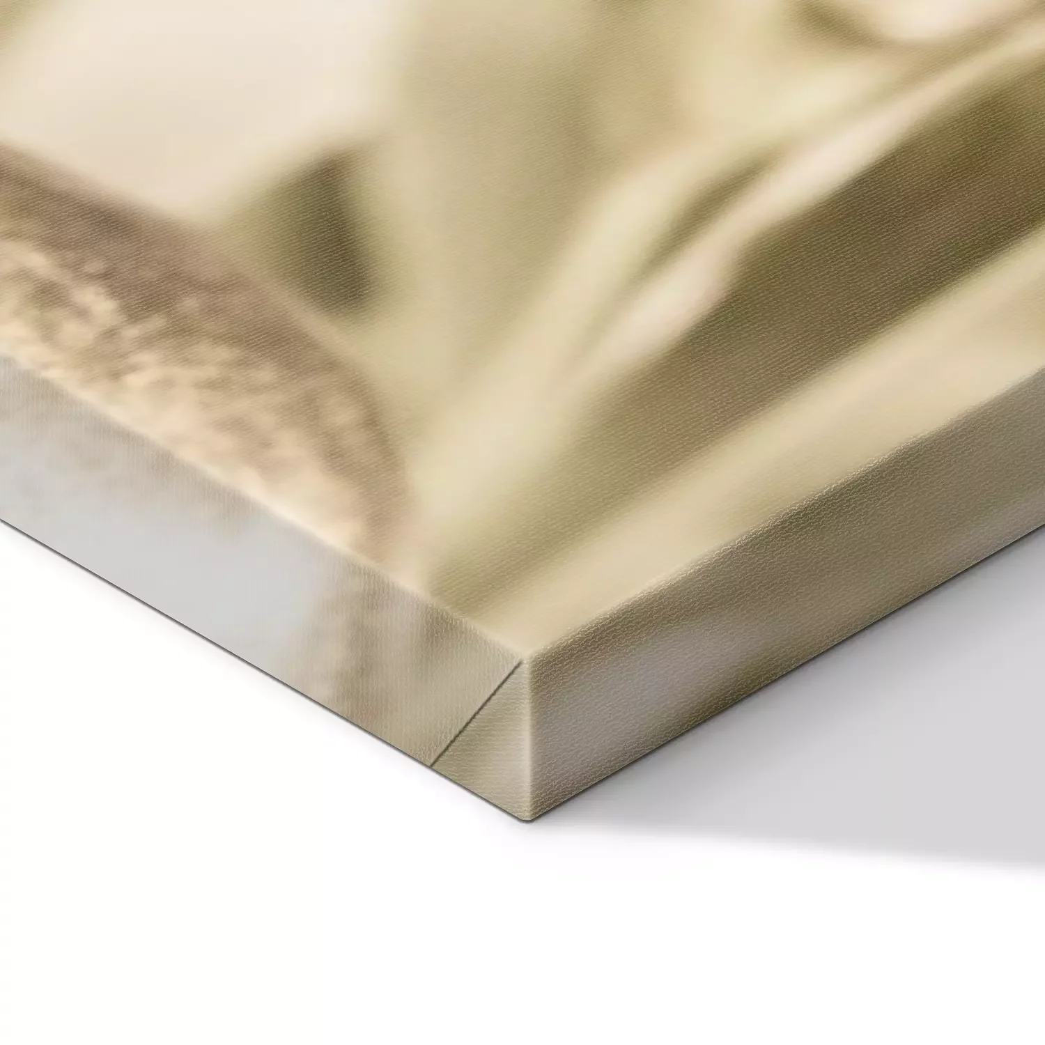 De print wordt aangebracht op hoogwaardig canvas dat op een schildersweefgetouw (spieraam) wordt gespannen. Omdat de print de zijranden bedekt, hoeft het ontwerp niet met een extra kader te worden omlijst. Wij raden ook composities aan die uit meerdere foto's bestaan en zo een coherente compositie vormen.