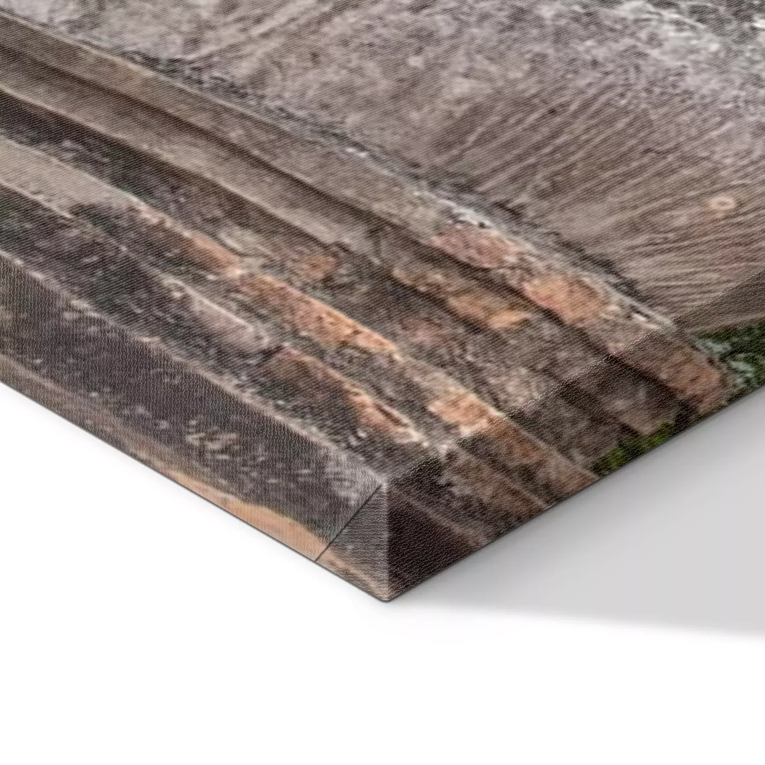 De print wordt aangebracht op hoogwaardig canvas dat op een schildersweefgetouw (spieraam) wordt gespannen. Omdat de print de zijranden bedekt, hoeft het ontwerp niet met een extra kader te worden omlijst. Wij raden ook composities aan die uit meerdere foto's bestaan en zo een coherente compositie vormen.
