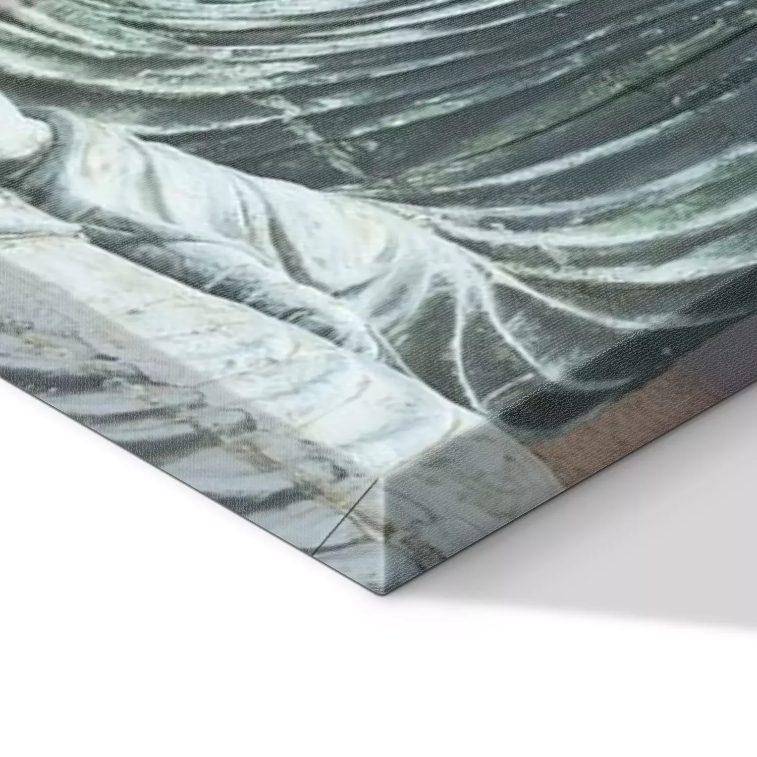 De print wordt aangebracht op hoogwaardig canvas dat op een schildersweefgetouw (spieraam) wordt gespannen. Omdat de print de zijranden bedekt, hoeft het ontwerp niet met een extra kader te worden omlijst. Wij raden ook composities aan die uit meerdere foto's bestaan en zo een coherente compositie vormen.