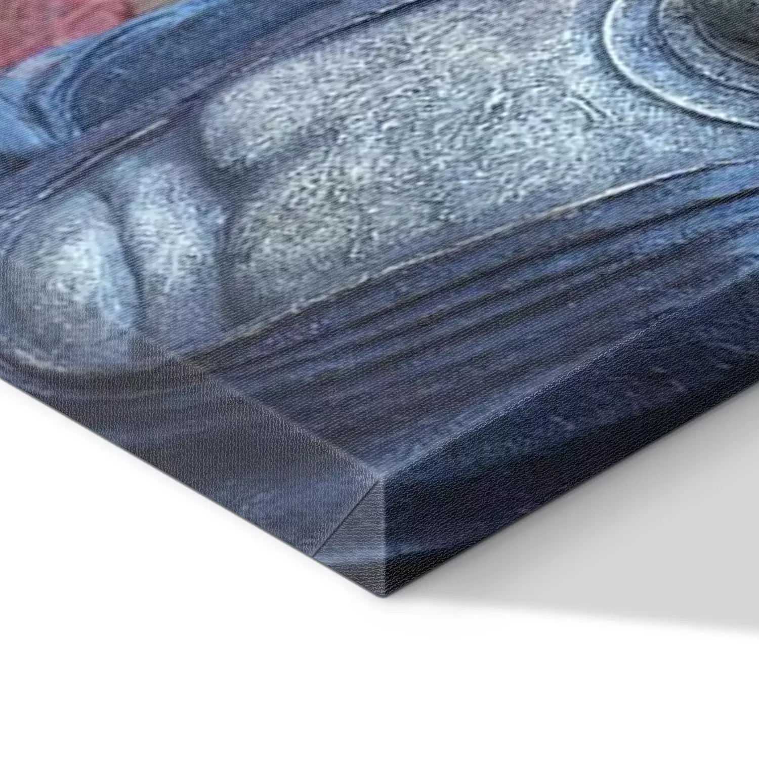 De print wordt aangebracht op hoogwaardig canvas dat op een schildersweefgetouw (spieraam) wordt gespannen. Omdat de print de zijranden bedekt, hoeft het ontwerp niet met een extra kader te worden omlijst. Wij raden ook composities aan die uit meerdere foto's bestaan en zo een coherente compositie vormen.