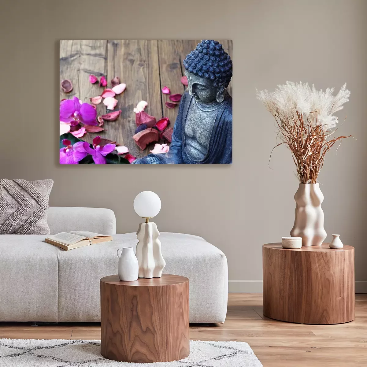 Canvas Boeddha en bloemblaadjes