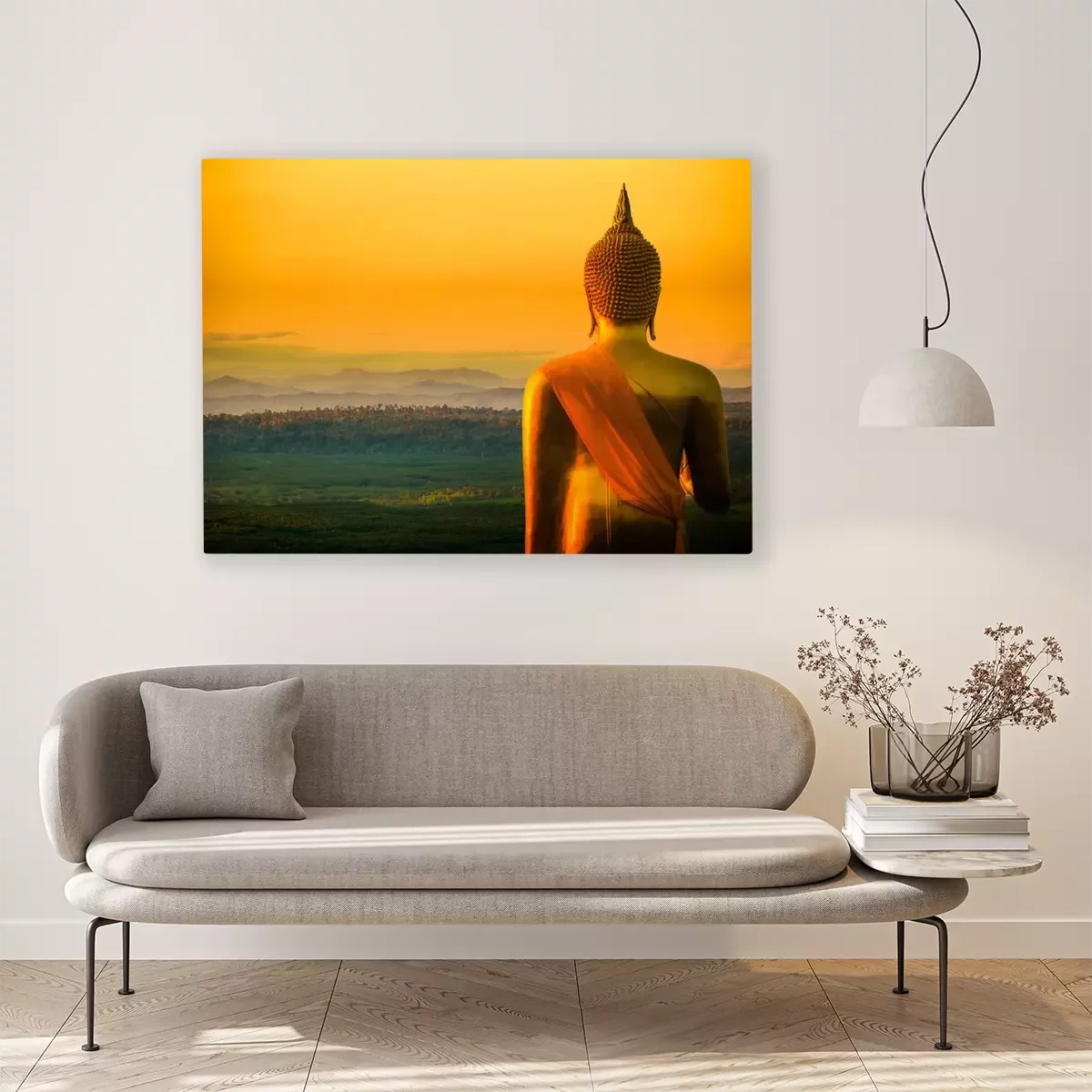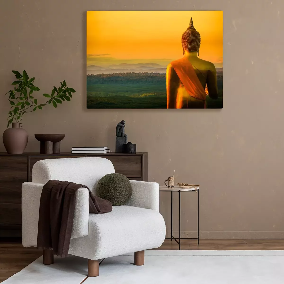 Canvas: Boeddha met prachtig landschap op de achtergrond
