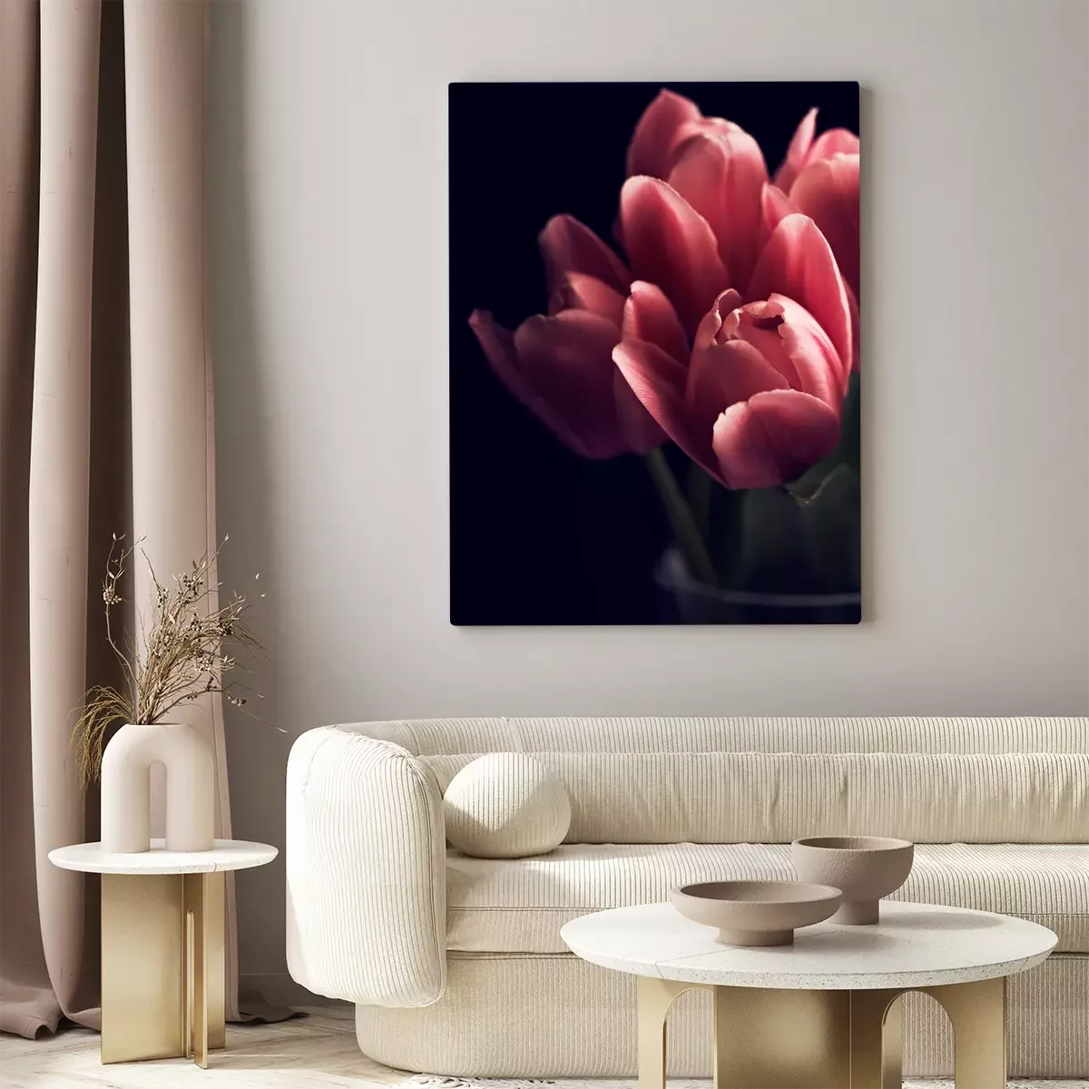 Canvas: Boeket van tulpen, close-up