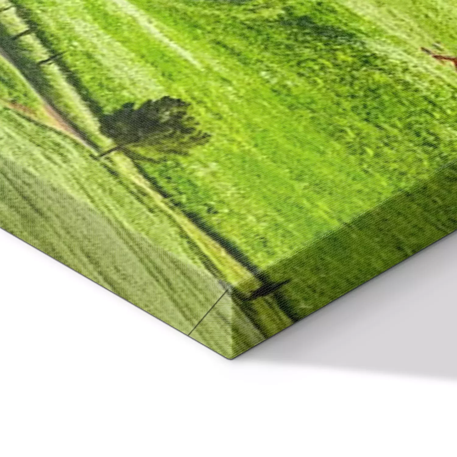 De print wordt aangebracht op hoogwaardig canvas dat op een schildersweefgetouw (spieraam) wordt gespannen. Omdat de print de zijranden bedekt, hoeft het ontwerp niet met een extra kader te worden omlijst. Wij raden ook composities aan die uit meerdere foto's bestaan en zo een coherente compositie vormen.