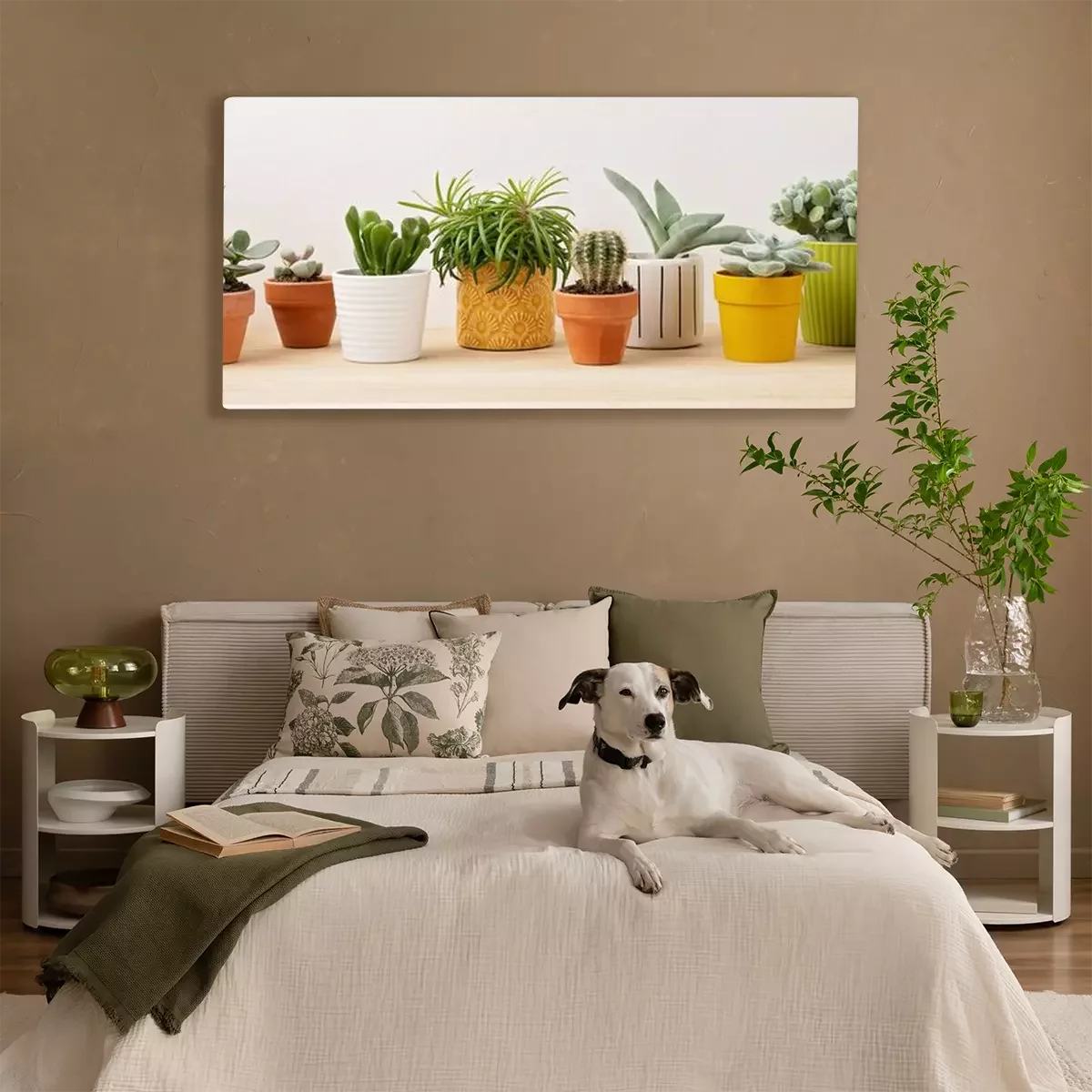 De print wordt aangebracht op hoogwaardig canvas dat op een schildersweefgetouw (spieraam) wordt gespannen. Omdat de print de zijranden bedekt, hoeft het ontwerp niet met een extra kader te worden omlijst. Wij raden ook composities aan die uit meerdere foto's bestaan en zo een coherente compositie vormen.