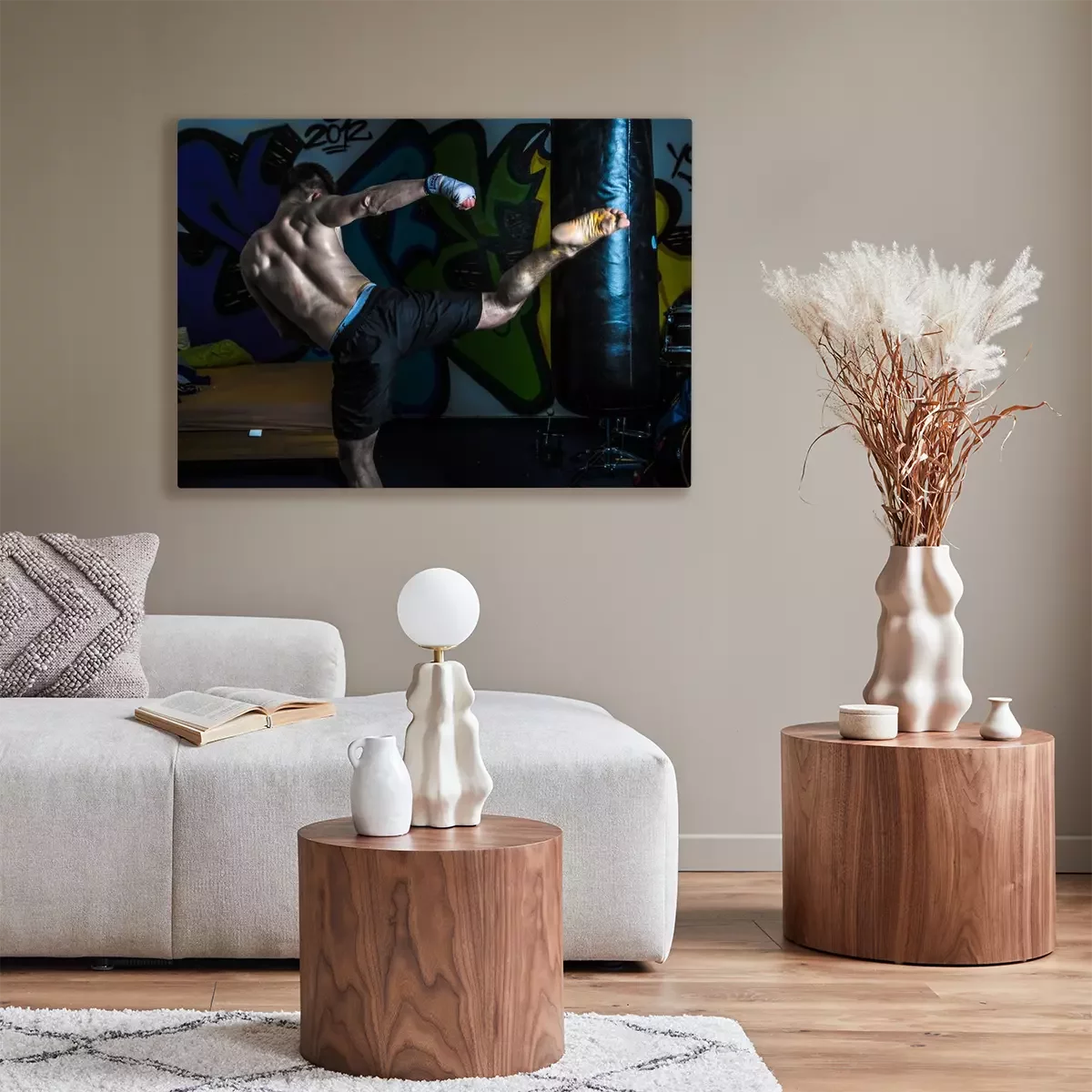 De print wordt aangebracht op hoogwaardig canvas dat op een schildersweefgetouw (spieraam) wordt gespannen. Omdat de print de zijranden bedekt, hoeft het ontwerp niet met een extra kader te worden omlijst. Wij raden ook composities aan die uit meerdere foto's bestaan en zo een coherente compositie vormen.