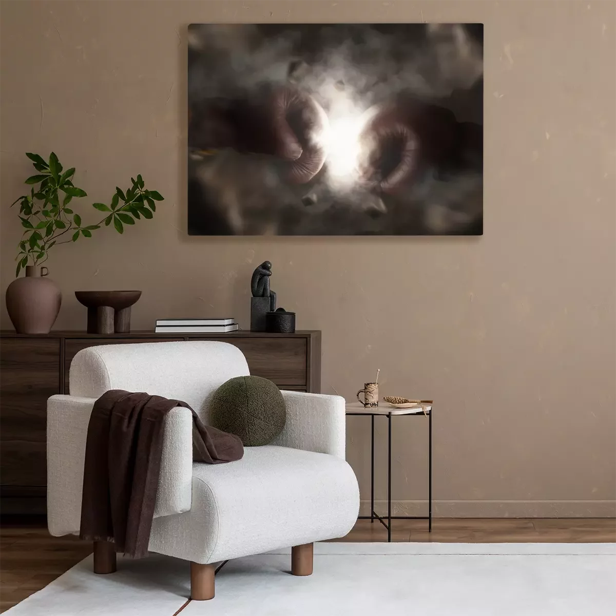 De print wordt aangebracht op hoogwaardig canvas dat op een schildersweefgetouw (spieraam) wordt gespannen. Omdat de print de zijranden bedekt, hoeft het ontwerp niet met een extra kader te worden omlijst. Wij raden ook composities aan die uit meerdere foto's bestaan en zo een coherente compositie vormen.