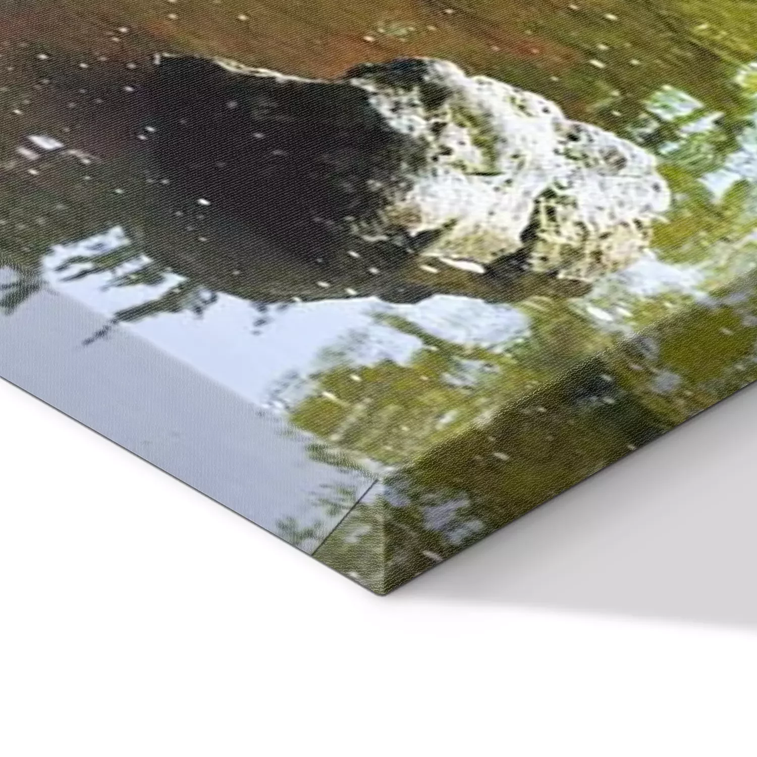 De print wordt aangebracht op hoogwaardig canvas dat op een schildersweefgetouw (spieraam) wordt gespannen. Omdat de print de zijranden bedekt, hoeft het ontwerp niet met een extra kader te worden omlijst. Wij raden ook composities aan die uit meerdere foto's bestaan en zo een coherente compositie vormen.
