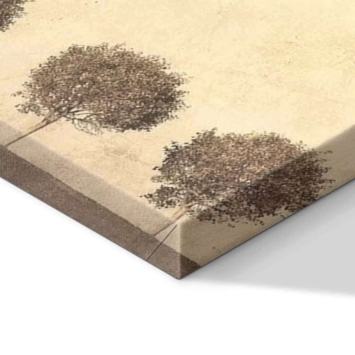 De print wordt aangebracht op hoogwaardig canvas dat op een schildersweefgetouw (spieraam) wordt gespannen. Omdat de print de zijranden bedekt, hoeft het ontwerp niet met een extra kader te worden omlijst. Wij raden ook composities aan die uit meerdere foto's bestaan en zo een coherente compositie vormen.