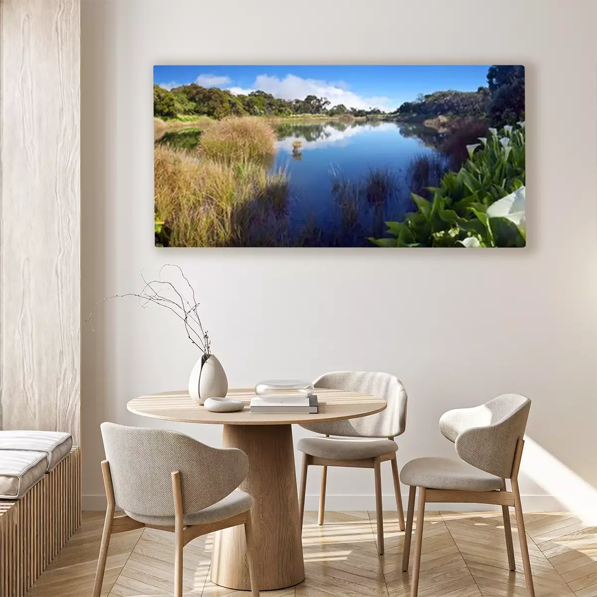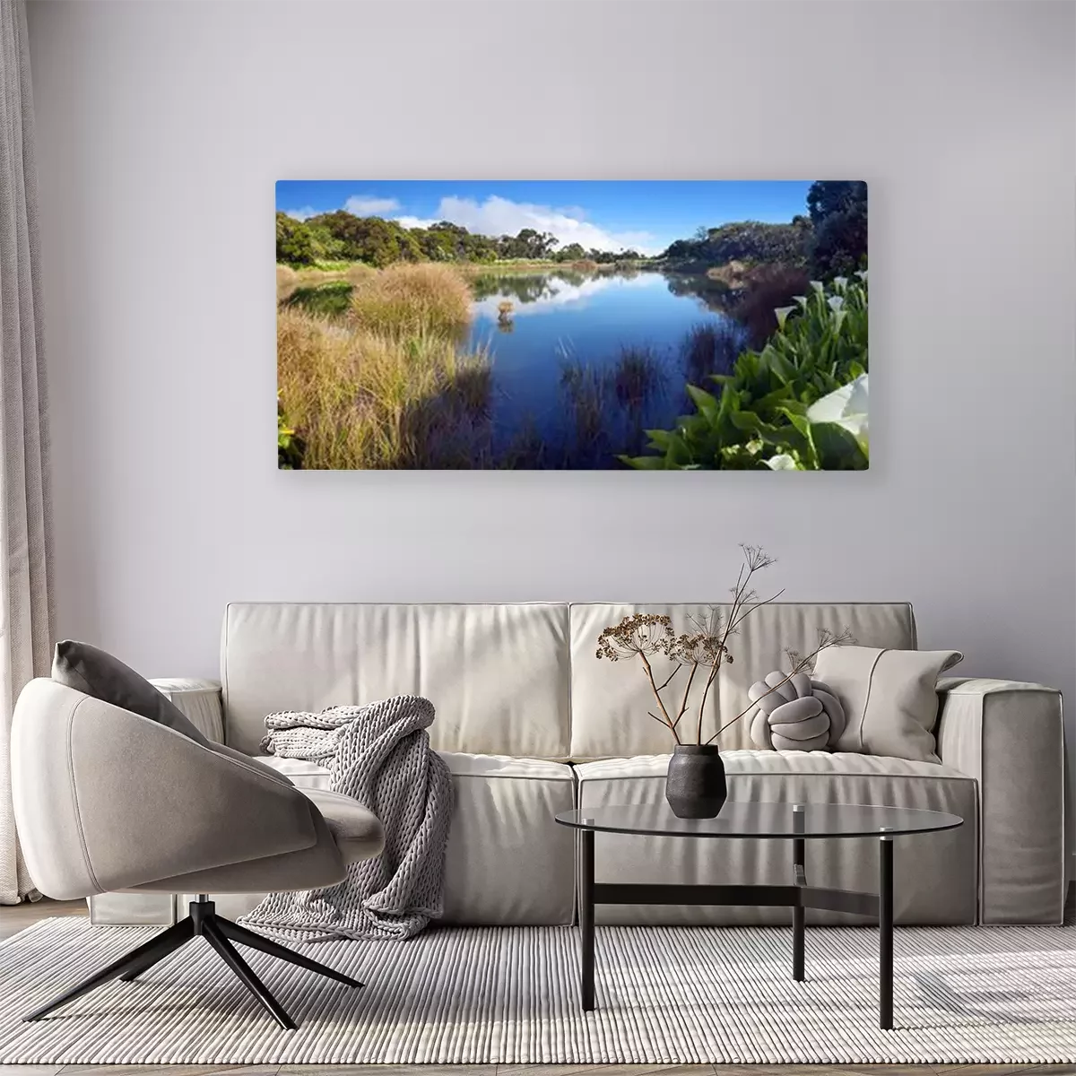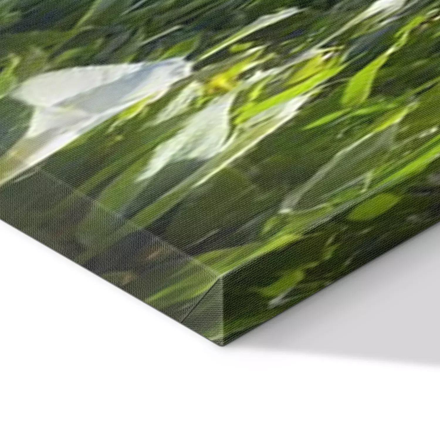 De print wordt aangebracht op hoogwaardig canvas dat op een schildersweefgetouw (spieraam) wordt gespannen. Omdat de print de zijranden bedekt, hoeft het ontwerp niet met een extra kader te worden omlijst. Wij raden ook composities aan die uit meerdere foto's bestaan en zo een coherente compositie vormen.