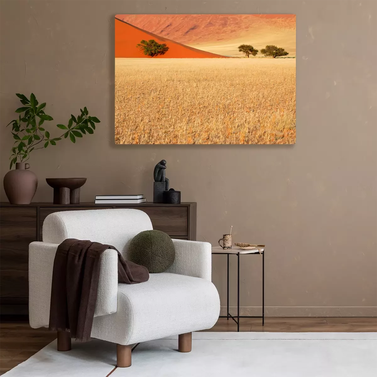 De print wordt aangebracht op hoogwaardig canvas dat op een schildersweefgetouw (spieraam) wordt gespannen. Omdat de print de zijranden bedekt, hoeft het ontwerp niet met een extra kader te worden omlijst. Wij raden ook composities aan die uit meerdere foto's bestaan en zo een coherente compositie vormen.