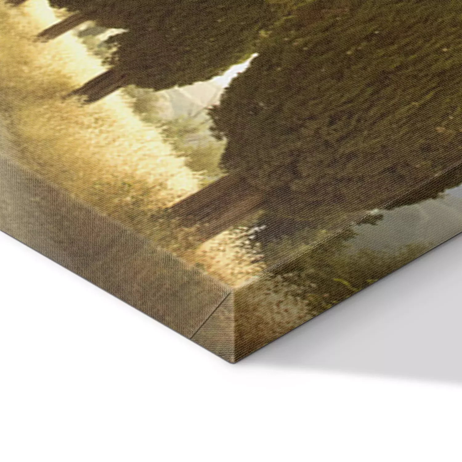 De print wordt aangebracht op hoogwaardig canvas dat op een schildersweefgetouw (spieraam) wordt gespannen. Omdat de print de zijranden bedekt, hoeft het ontwerp niet met een extra kader te worden omlijst. Wij raden ook composities aan die uit meerdere foto's bestaan en zo een coherente compositie vormen.