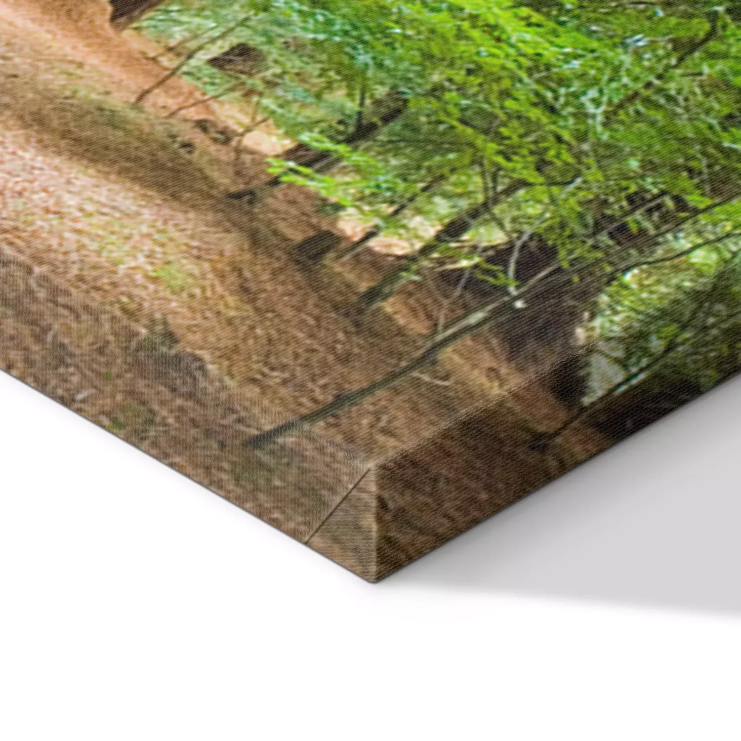 De print wordt aangebracht op hoogwaardig canvas dat op een schildersweefgetouw (spieraam) wordt gespannen. Omdat de print de zijranden bedekt, hoeft het ontwerp niet met een extra kader te worden omlijst. Wij raden ook composities aan die uit meerdere foto's bestaan en zo een coherente compositie vormen.