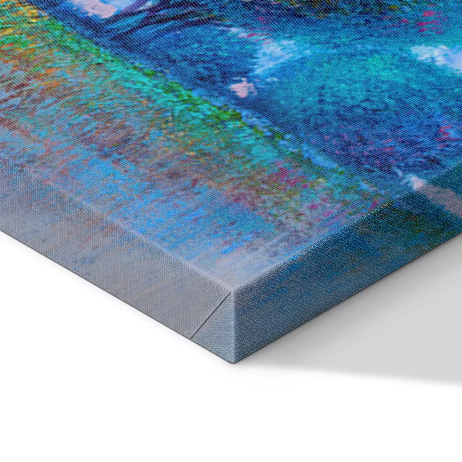 De print wordt aangebracht op hoogwaardig canvas dat op een schildersweefgetouw (spieraam) wordt gespannen. Omdat de print de zijranden bedekt, hoeft het ontwerp niet met een extra kader te worden omlijst. Wij raden ook composities aan die uit meerdere foto's bestaan en zo een coherente compositie vormen.
