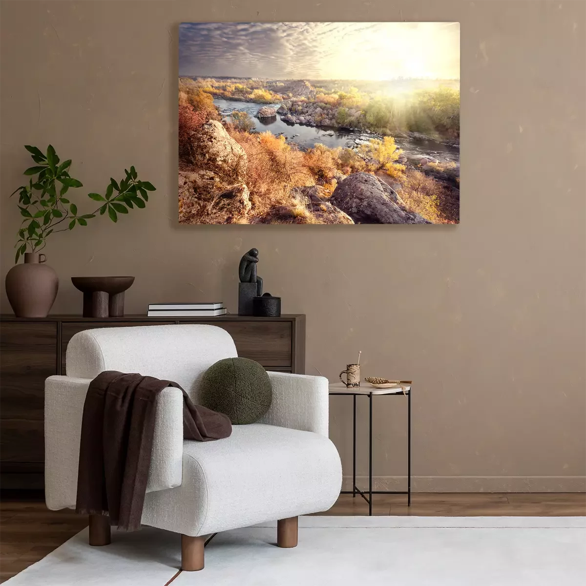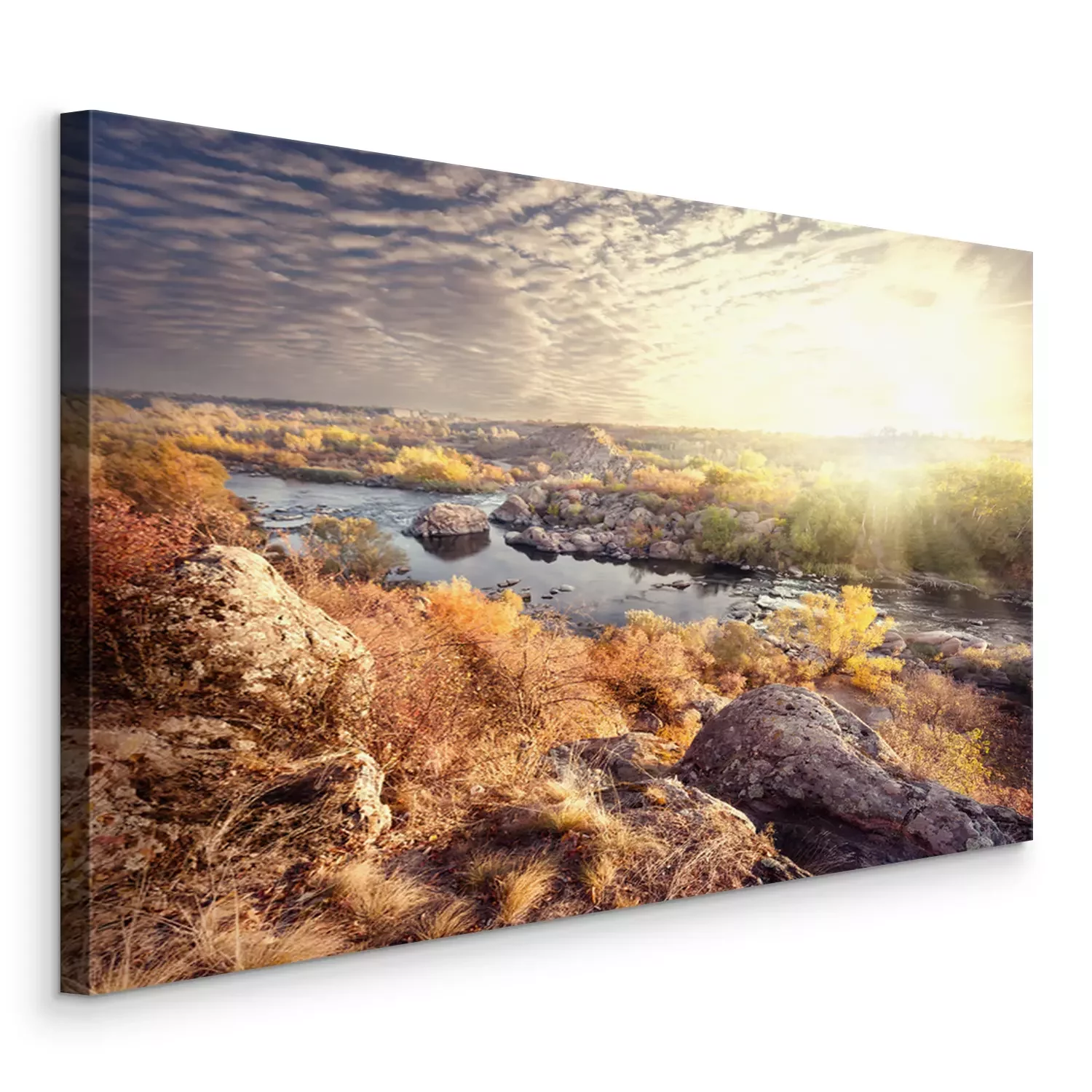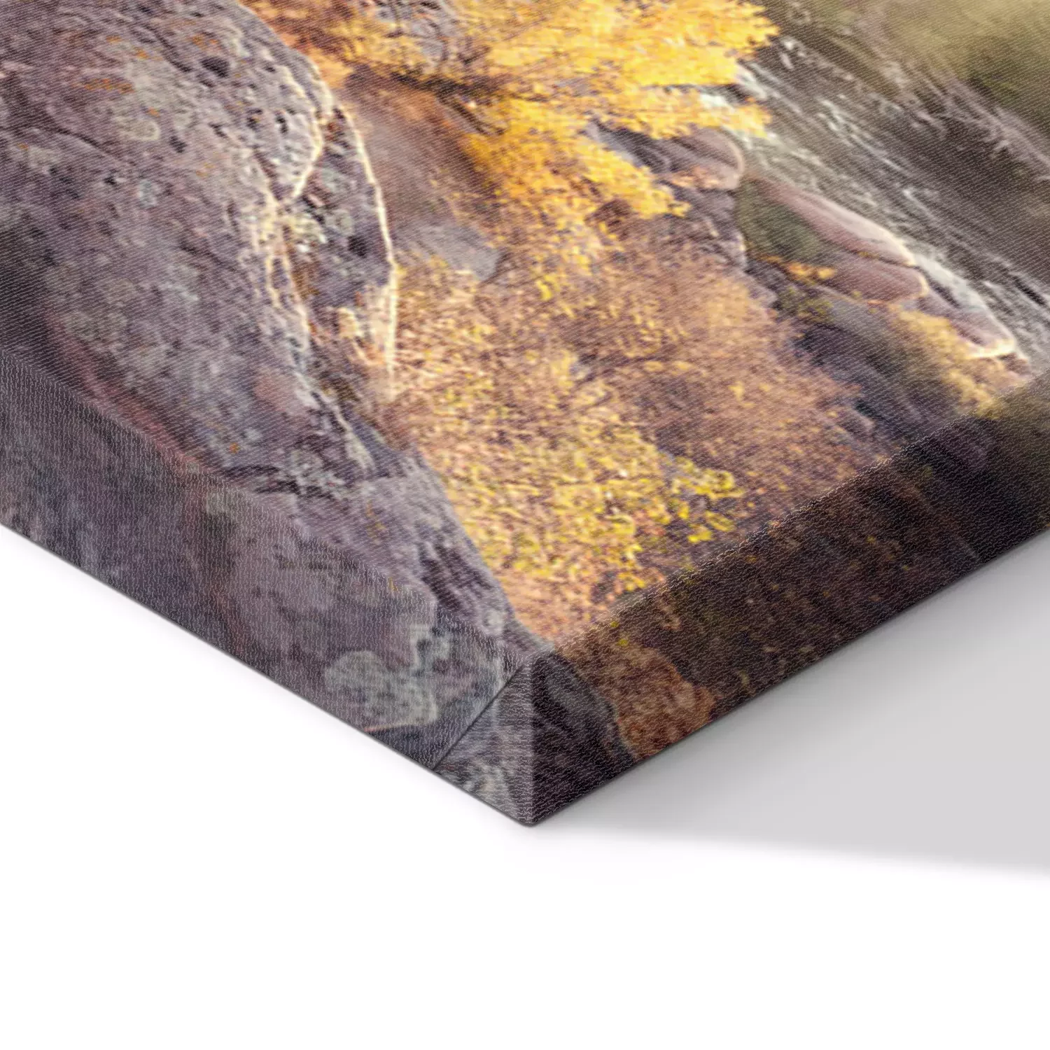 De print wordt aangebracht op hoogwaardig canvas dat op een schildersweefgetouw (spieraam) wordt gespannen. Omdat de print de zijranden bedekt, hoeft het ontwerp niet met een extra kader te worden omlijst. Wij raden ook composities aan die uit meerdere foto's bestaan en zo een coherente compositie vormen.