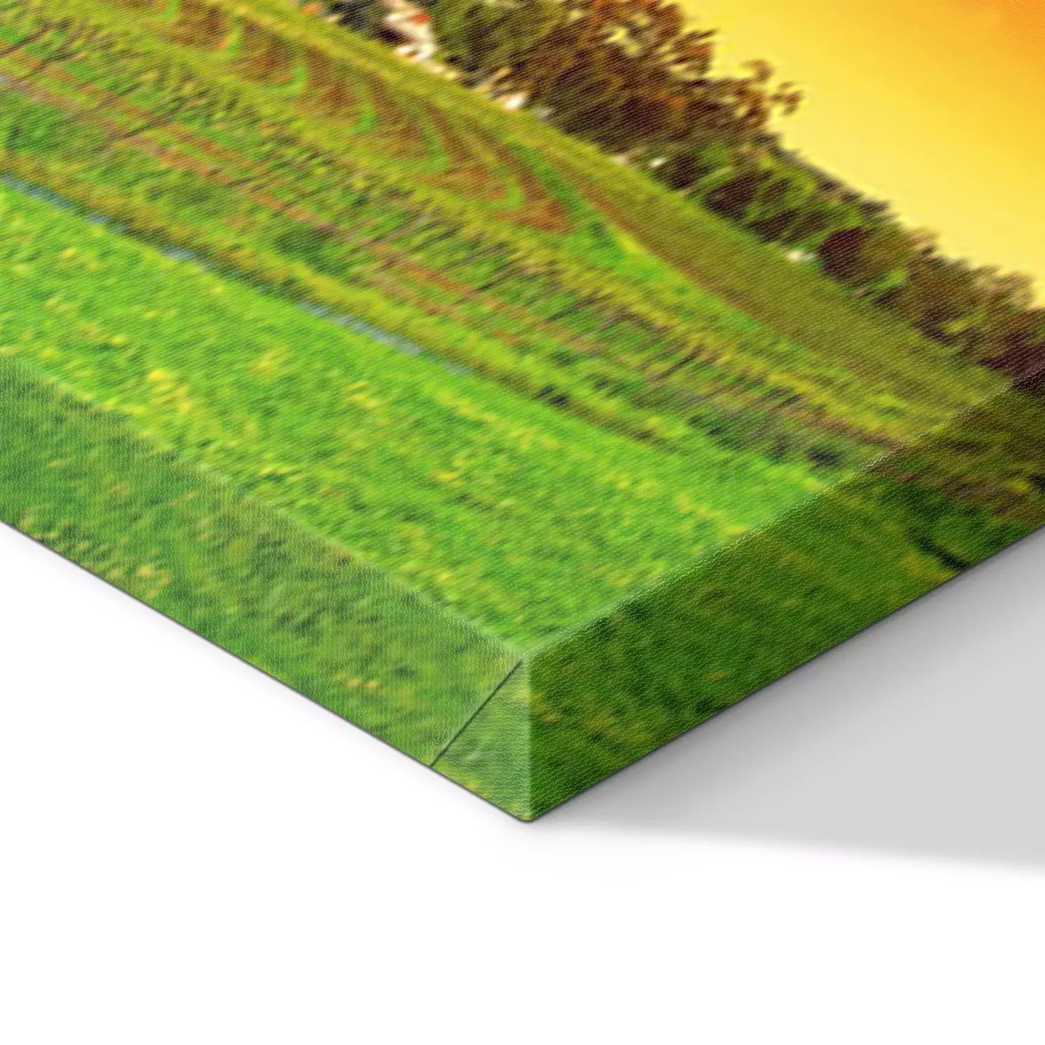 De print wordt aangebracht op hoogwaardig canvas dat op een schildersweefgetouw (spieraam) wordt gespannen. Omdat de print de zijranden bedekt, hoeft het ontwerp niet met een extra kader te worden omlijst. Wij raden ook composities aan die uit meerdere foto's bestaan en zo een coherente compositie vormen.
