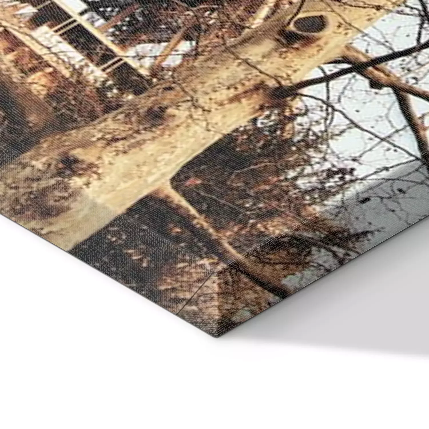 De print wordt aangebracht op hoogwaardig canvas dat op een schildersweefgetouw (spieraam) wordt gespannen. Omdat de print de zijranden bedekt, hoeft het ontwerp niet met een extra kader te worden omlijst. Wij raden ook composities aan die uit meerdere foto's bestaan en zo een coherente compositie vormen.