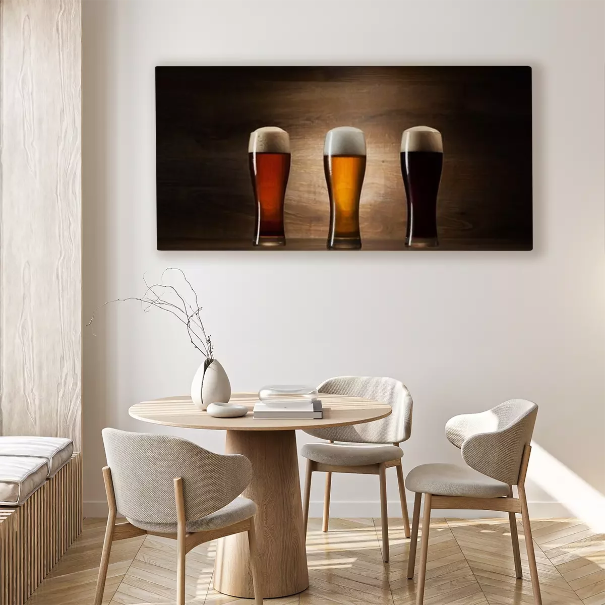 Canvas: boom glazen bier op hout achtergrond met copyspace