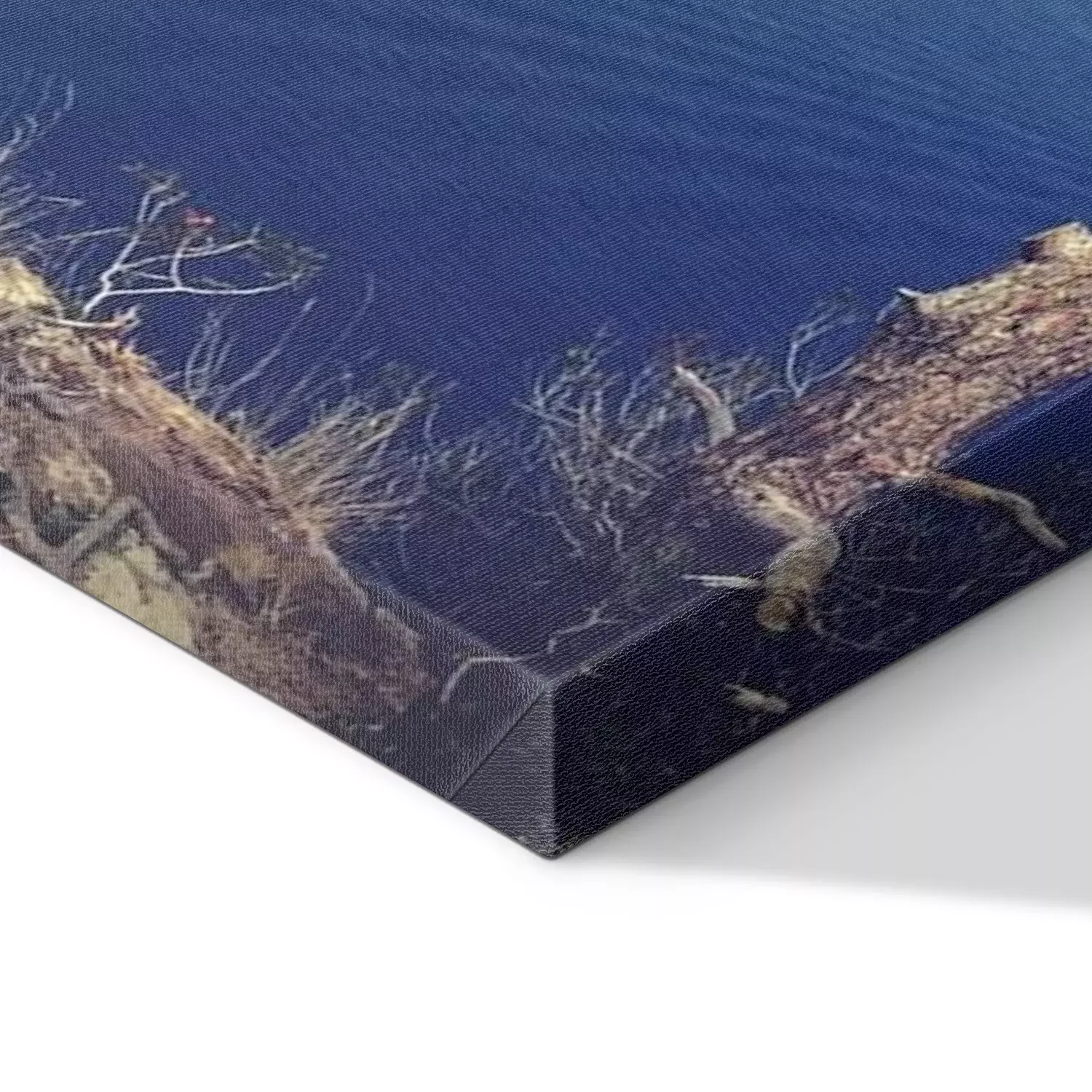 De print wordt aangebracht op hoogwaardig canvas dat op een schildersweefgetouw (spieraam) wordt gespannen. Omdat de print de zijranden bedekt, hoeft het ontwerp niet met een extra kader te worden omlijst. Wij raden ook composities aan die uit meerdere foto's bestaan en zo een coherente compositie vormen.