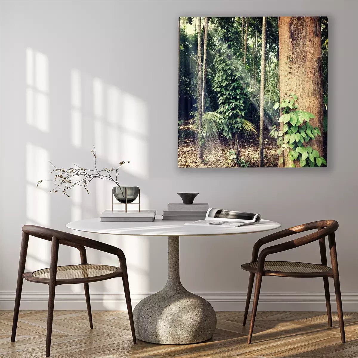 De print wordt aangebracht op hoogwaardig canvas dat op een schildersweefgetouw (spieraam) wordt gespannen. Omdat de print de zijranden bedekt, hoeft het ontwerp niet met een extra kader te worden omlijst. Wij raden ook composities aan die uit meerdere foto's bestaan en zo een coherente compositie vormen.