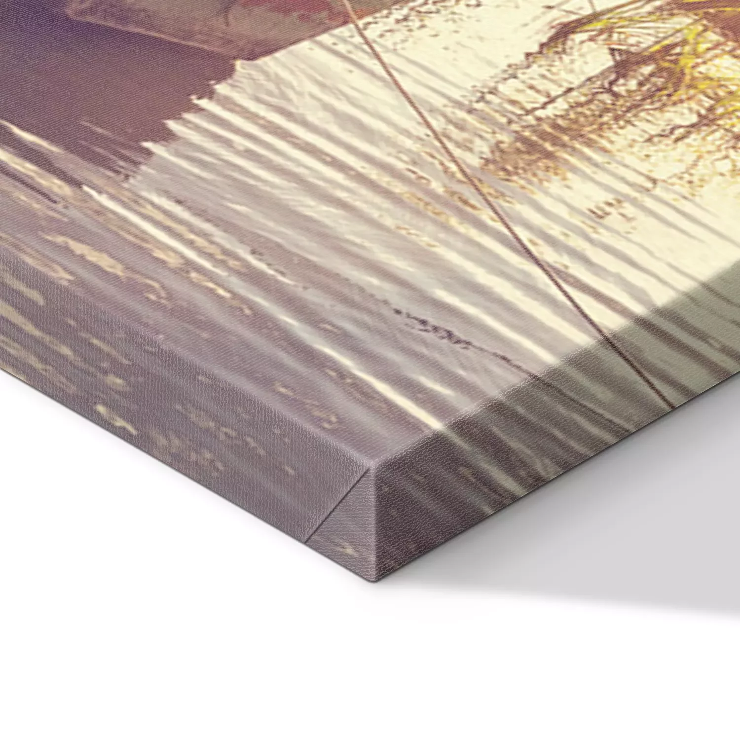 De print wordt aangebracht op hoogwaardig canvas dat op een schildersweefgetouw (spieraam) wordt gespannen. Omdat de print de zijranden bedekt, hoeft het ontwerp niet met een extra kader te worden omlijst. Wij raden ook composities aan die uit meerdere foto's bestaan en zo een coherente compositie vormen.