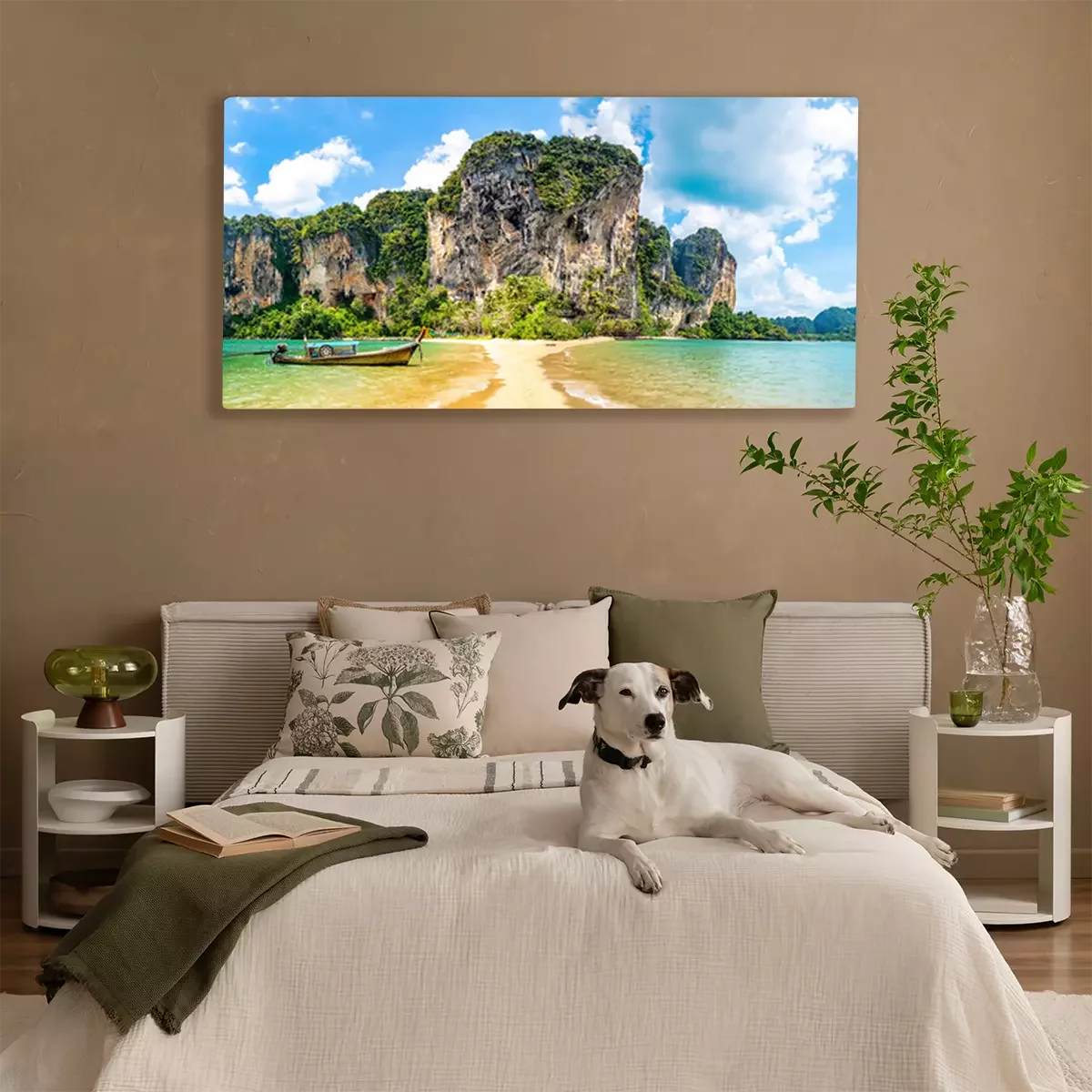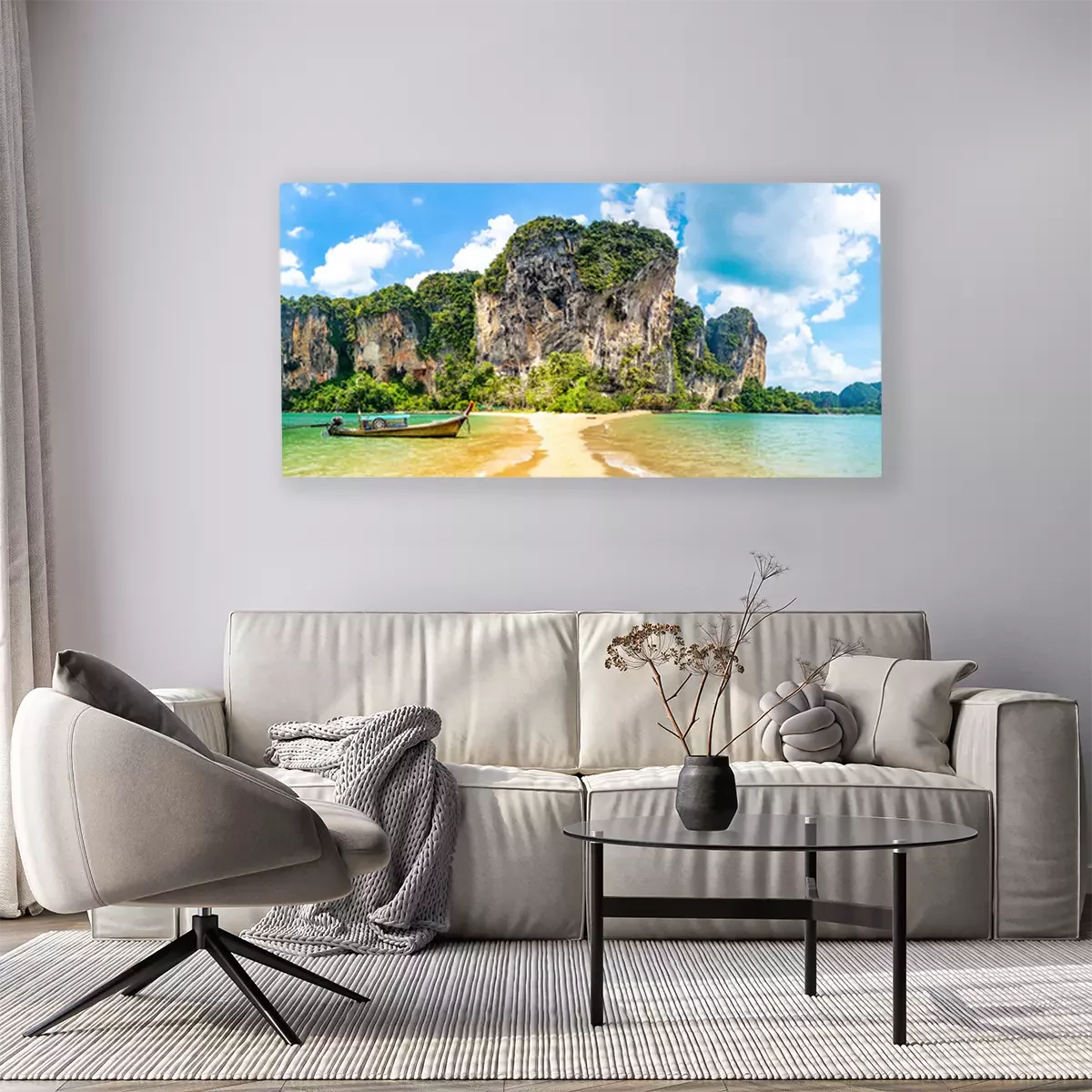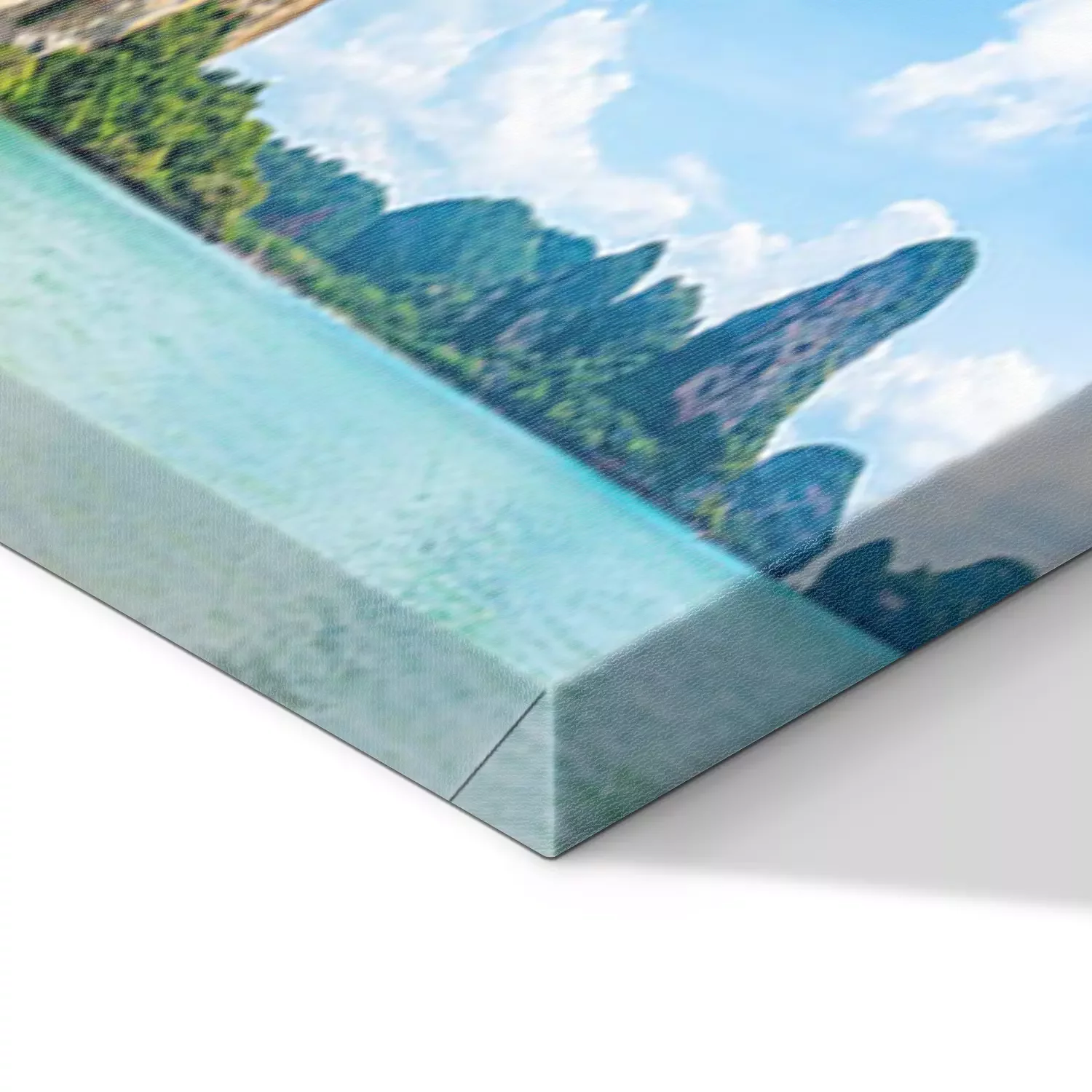 De print wordt aangebracht op hoogwaardig canvas dat op een schildersweefgetouw (spieraam) wordt gespannen. Omdat de print de zijranden bedekt, hoeft het ontwerp niet met een extra kader te worden omlijst. Wij raden ook composities aan die uit meerdere foto's bestaan en zo een coherente compositie vormen.