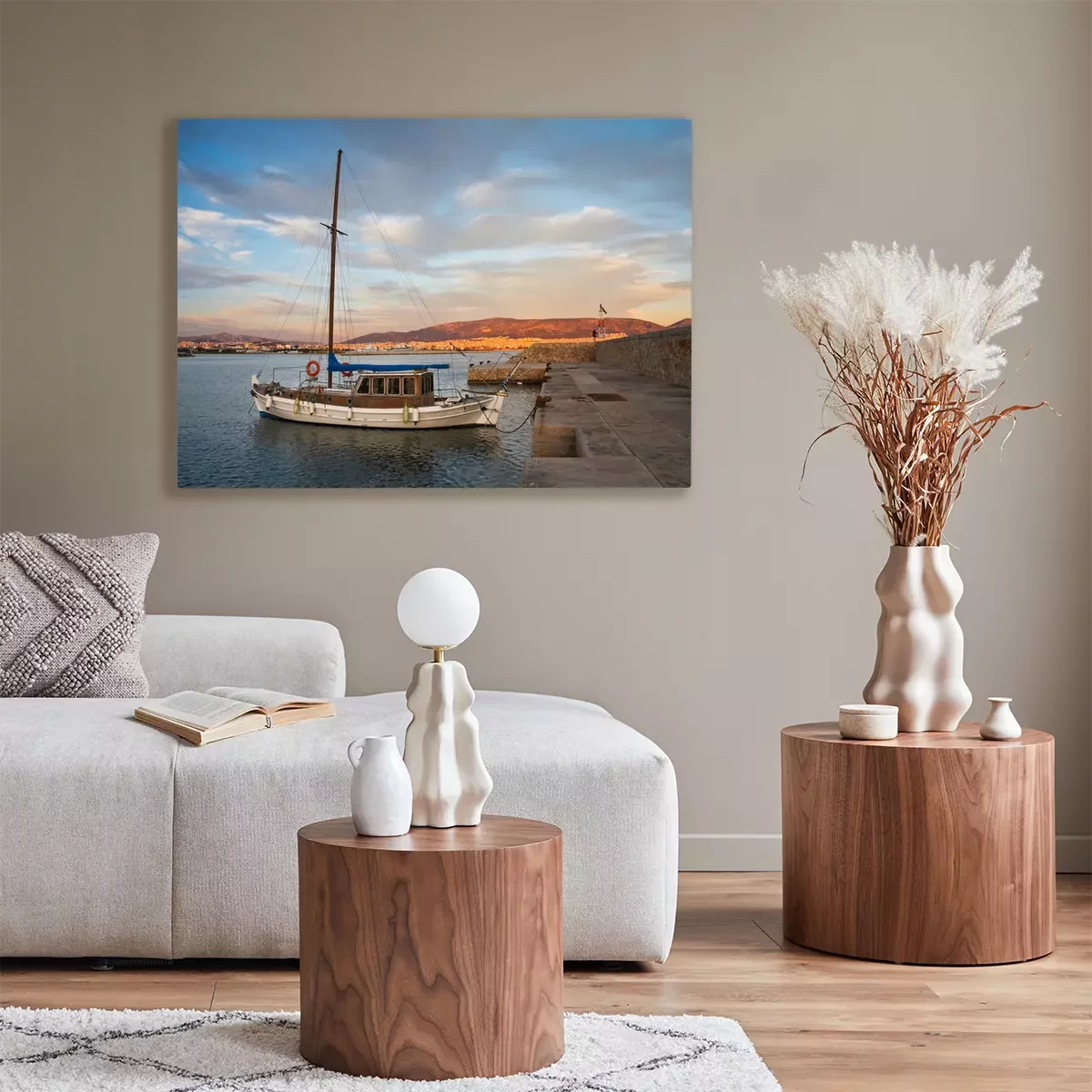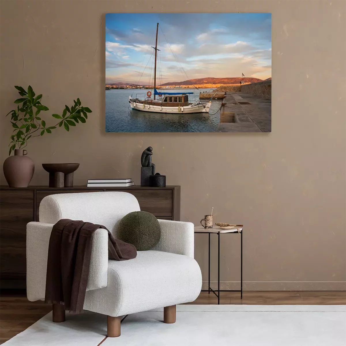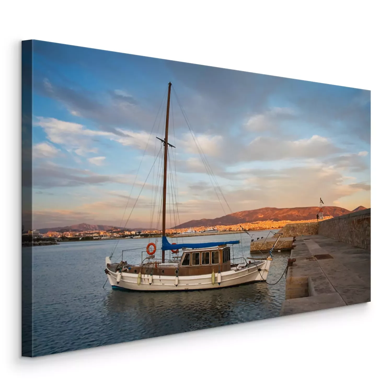 Canvas: Boot verankerd in Mikrolimano jachthaven in Piraeus, Athene.