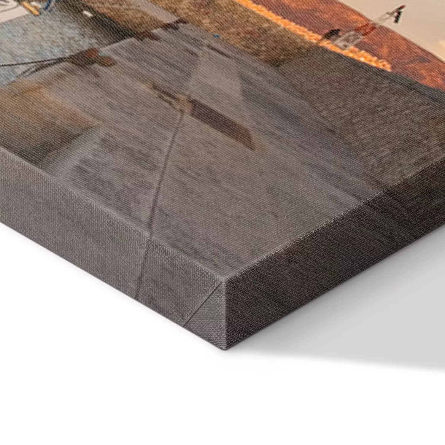 De print wordt aangebracht op hoogwaardig canvas dat op een schildersweefgetouw (spieraam) wordt gespannen. Omdat de print de zijranden bedekt, hoeft het ontwerp niet met een extra kader te worden omlijst. Wij raden ook composities aan die uit meerdere foto's bestaan en zo een coherente compositie vormen.