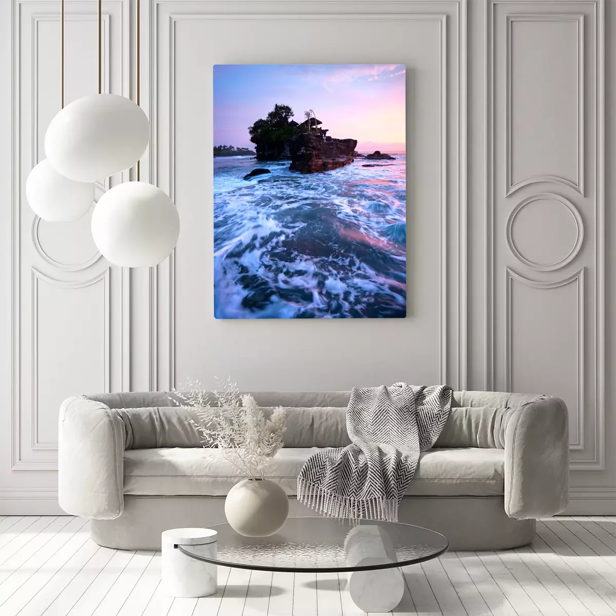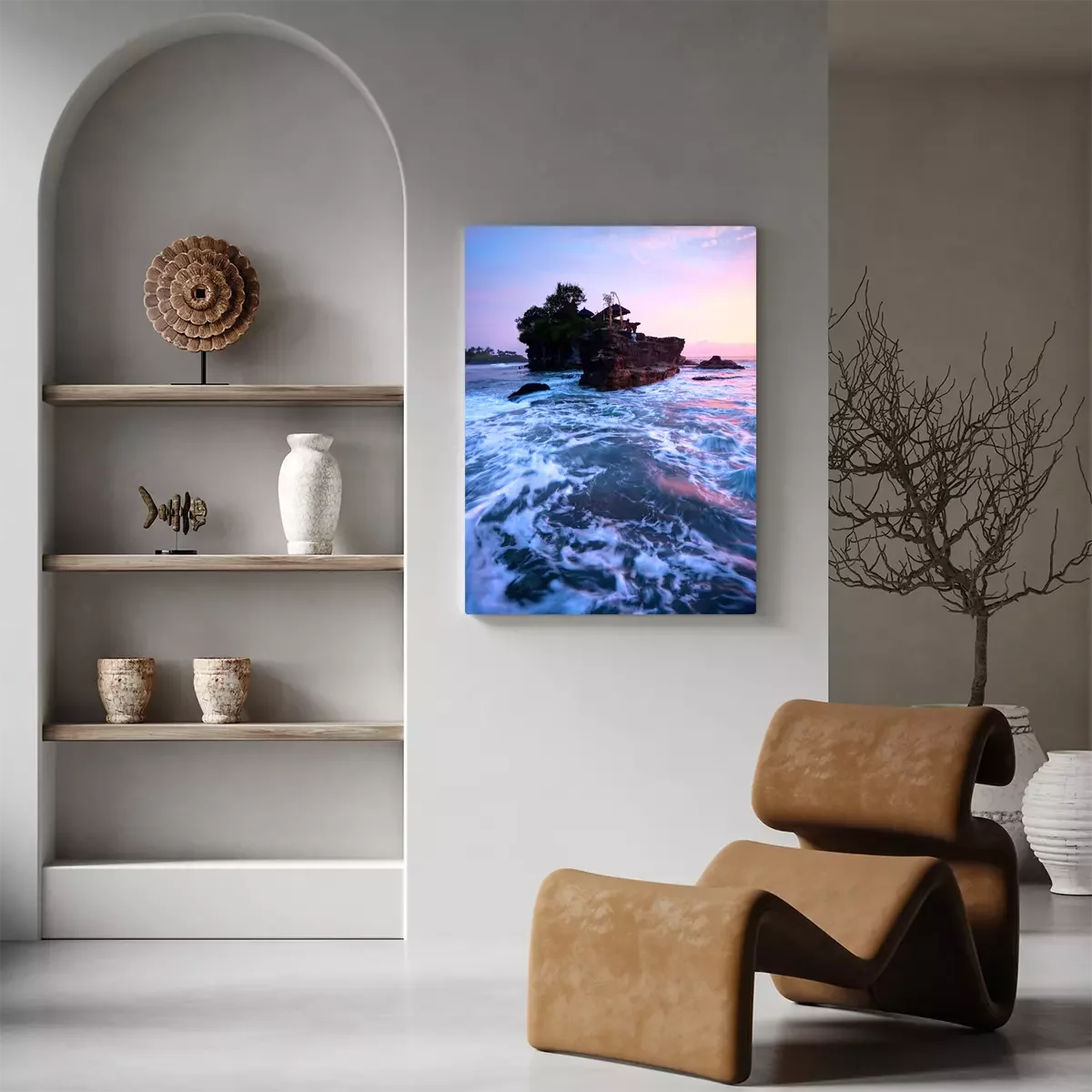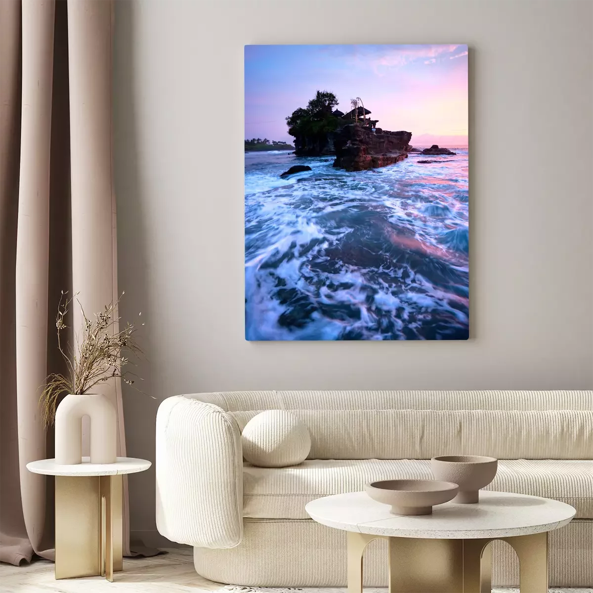De print wordt aangebracht op hoogwaardig canvas dat op een schildersweefgetouw (spieraam) wordt gespannen. Omdat de print de zijranden bedekt, hoeft het ontwerp niet met een extra kader te worden omlijst. Wij raden ook composities aan die uit meerdere foto's bestaan en zo een coherente compositie vormen.