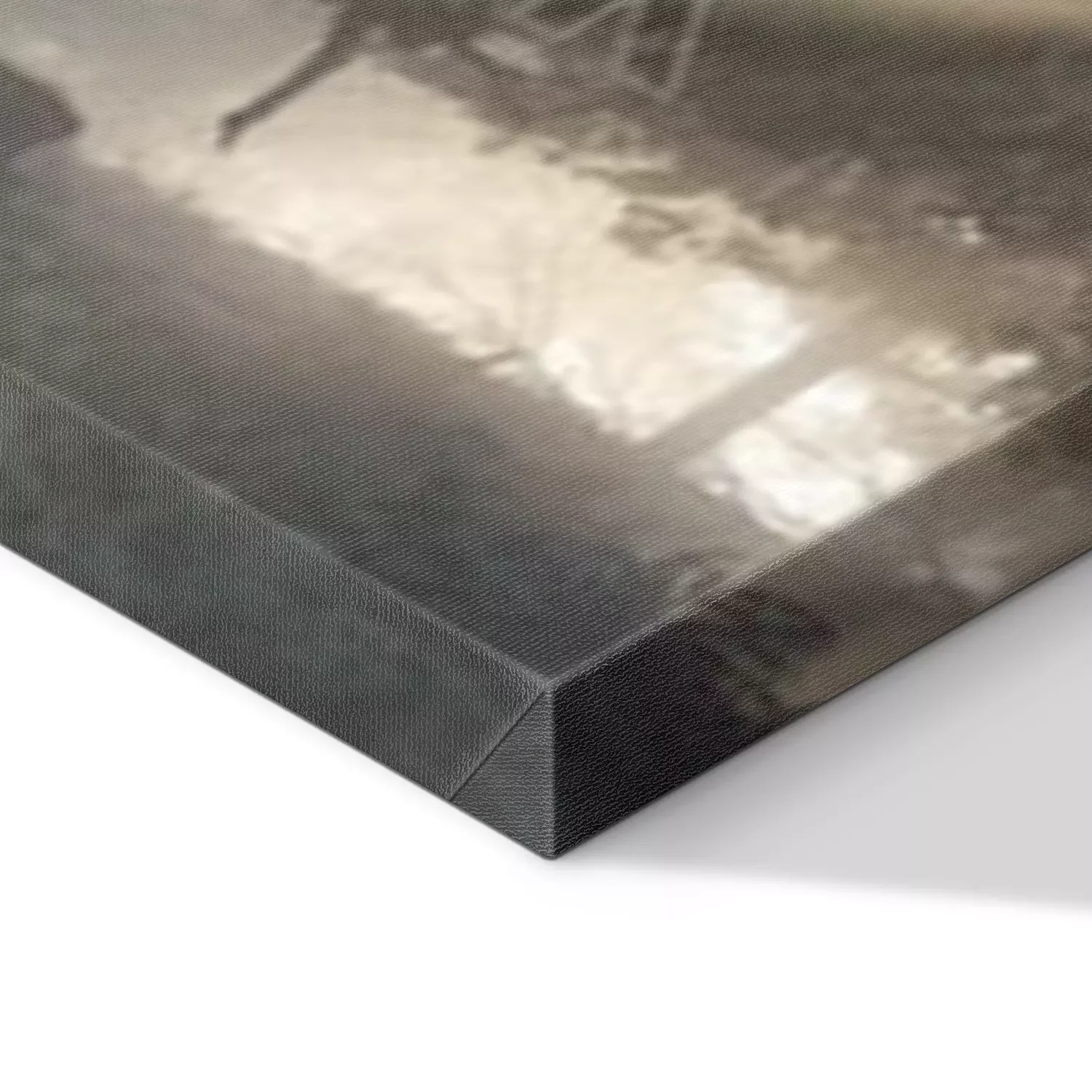 De print wordt aangebracht op hoogwaardig canvas dat op een schildersweefgetouw (spieraam) wordt gespannen. Omdat de print de zijranden bedekt, hoeft het ontwerp niet met een extra kader te worden omlijst. Wij raden ook composities aan die uit meerdere foto's bestaan en zo een coherente compositie vormen.