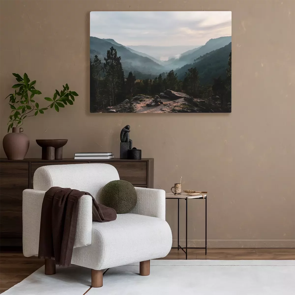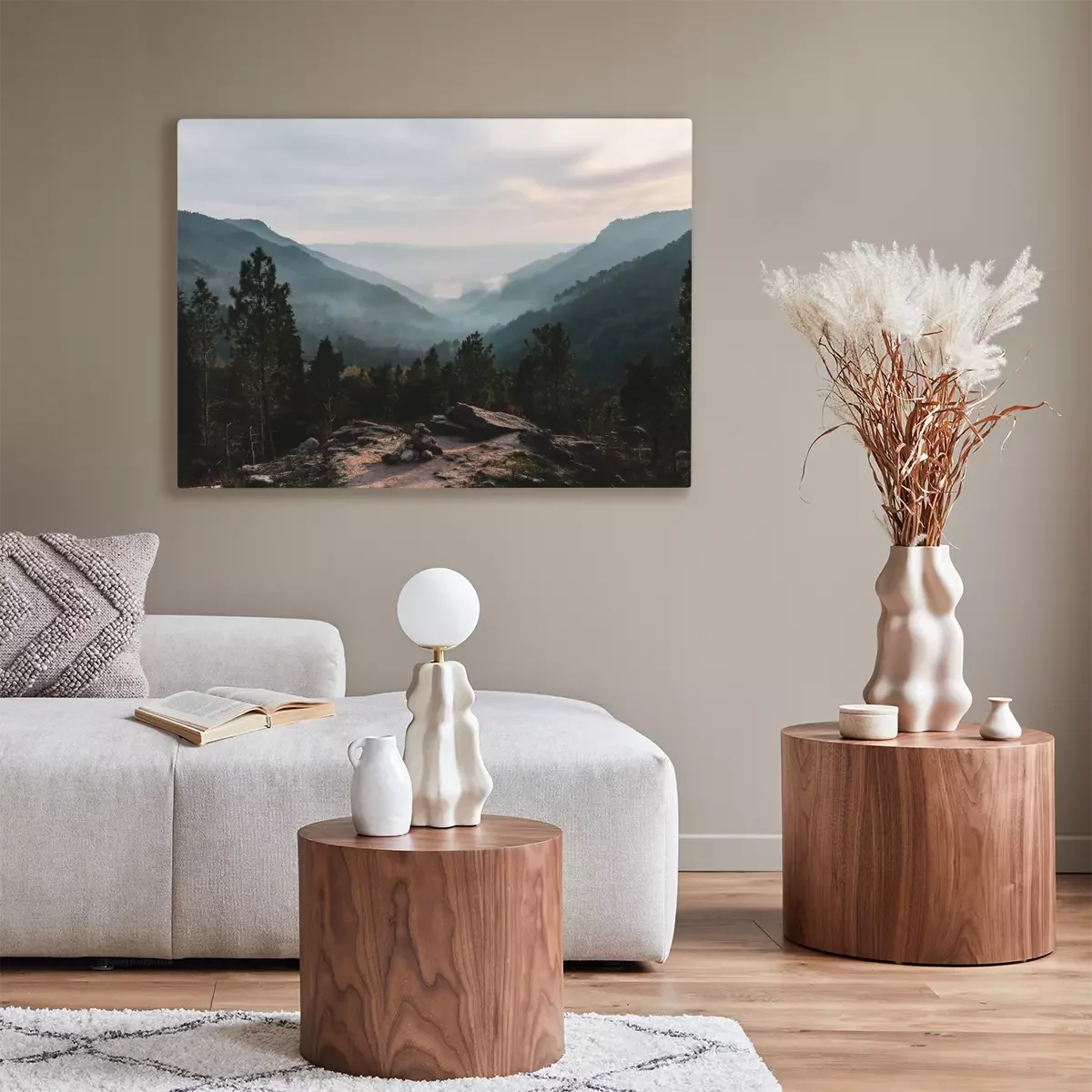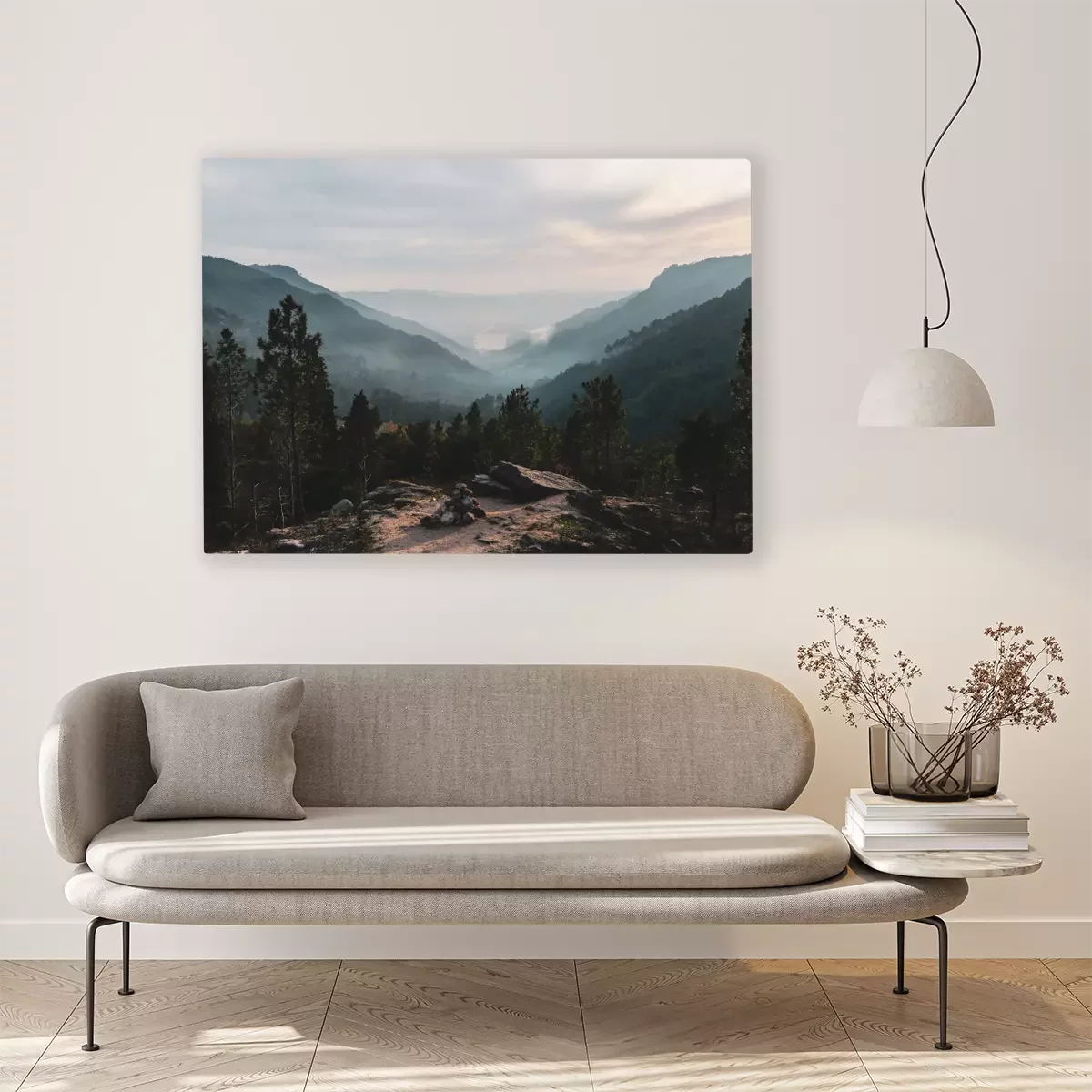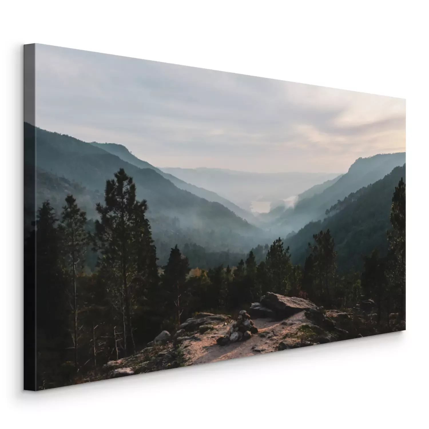 Canvas: Bos op een achtergrond van mistige heuvels