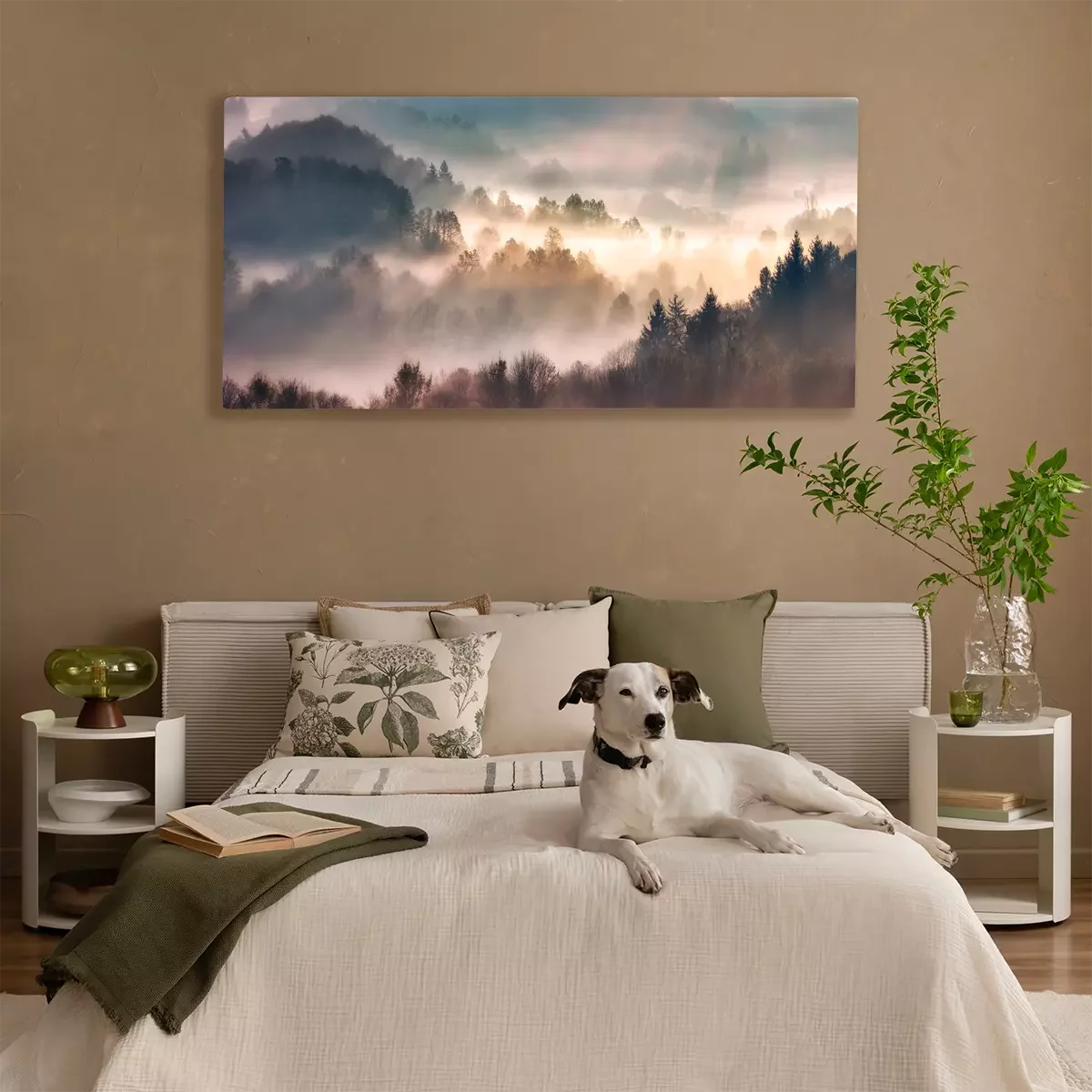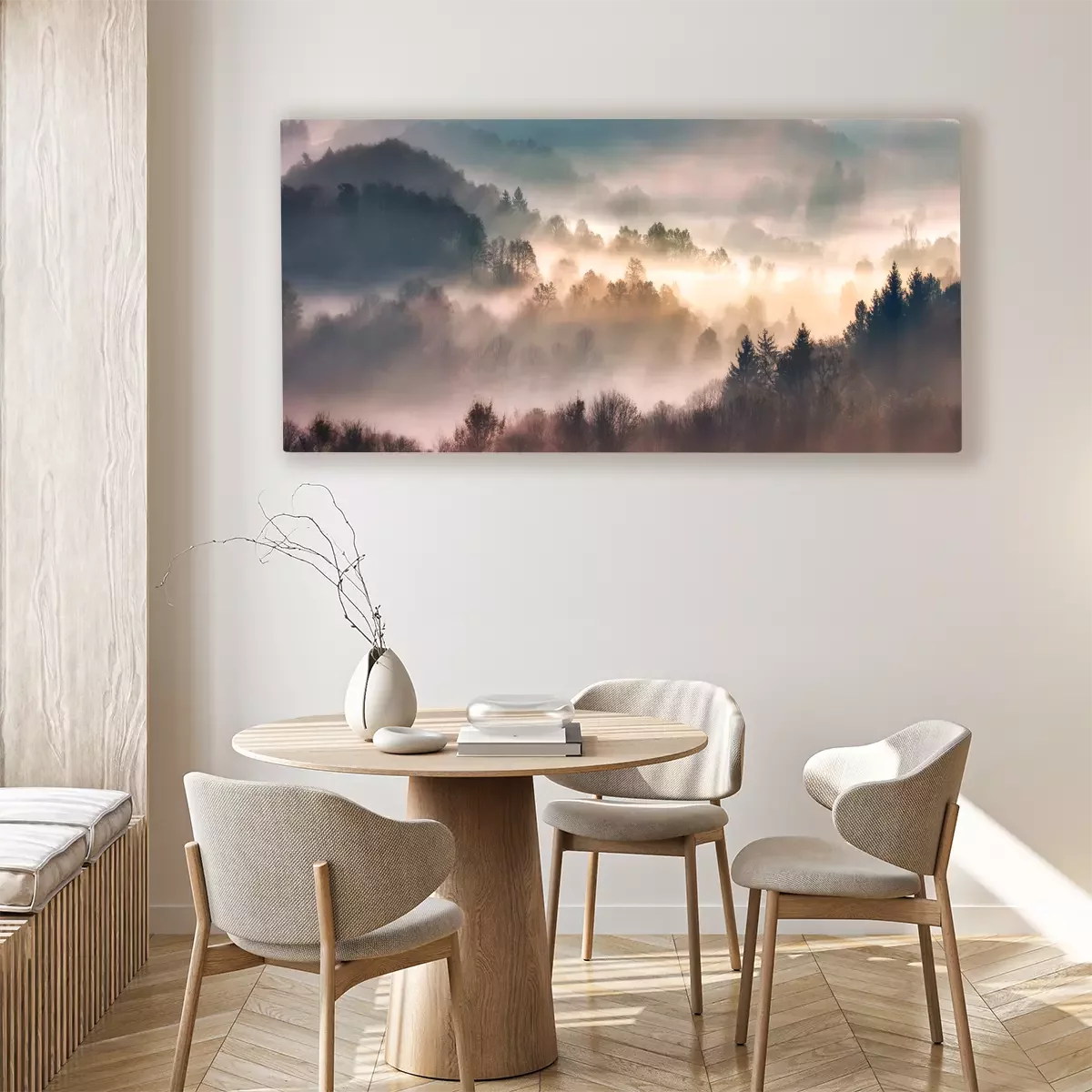 Bosheuvels in de ochtendmist