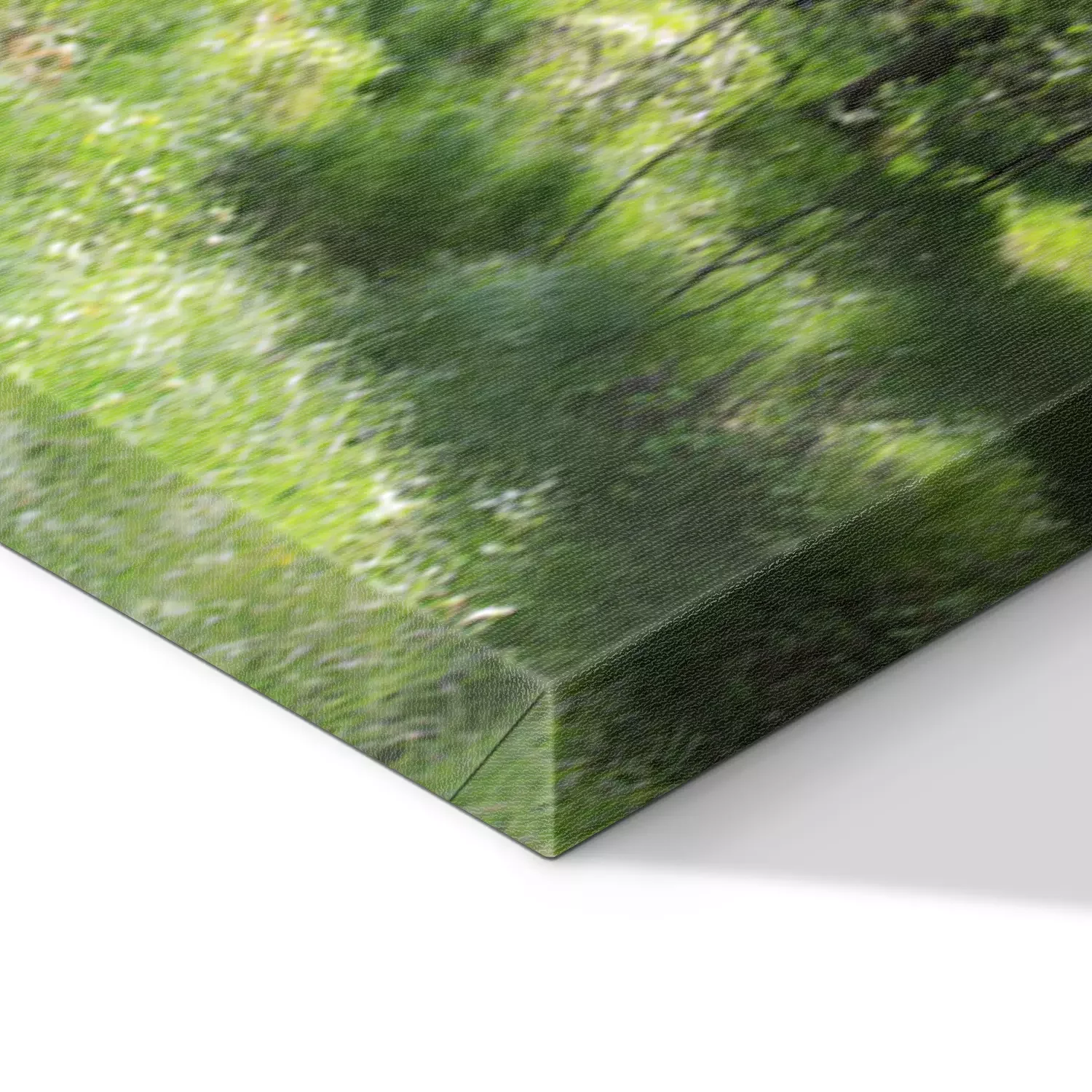 De print wordt aangebracht op hoogwaardig canvas dat op een schildersweefgetouw (spieraam) wordt gespannen. Omdat de print de zijranden bedekt, hoeft het ontwerp niet met een extra kader te worden omlijst. Wij raden ook composities aan die uit meerdere foto's bestaan en zo een coherente compositie vormen.