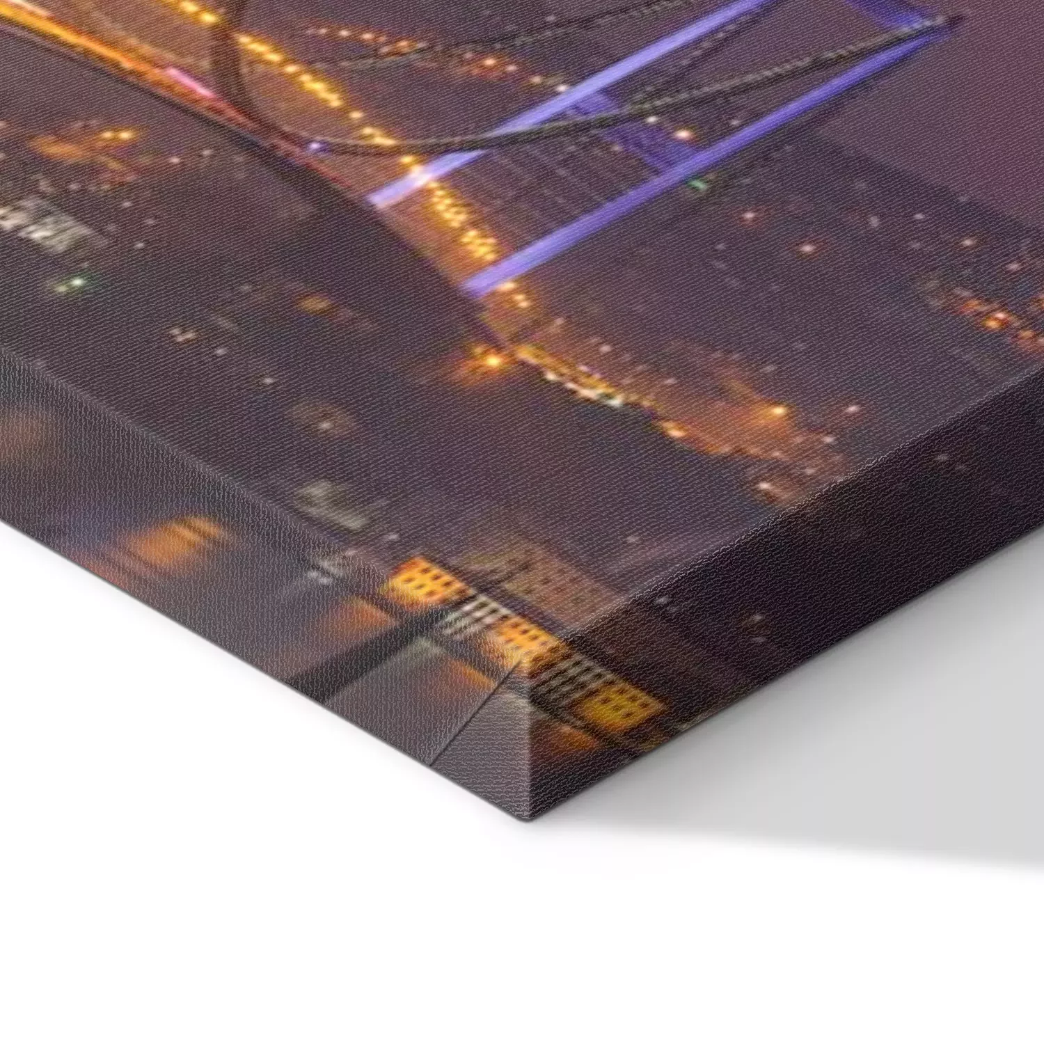 De print wordt aangebracht op hoogwaardig canvas dat op een schildersweefgetouw (spieraam) wordt gespannen. Omdat de print de zijranden bedekt, hoeft het ontwerp niet met een extra kader te worden omlijst. Wij raden ook composities aan die uit meerdere foto's bestaan en zo een coherente compositie vormen.