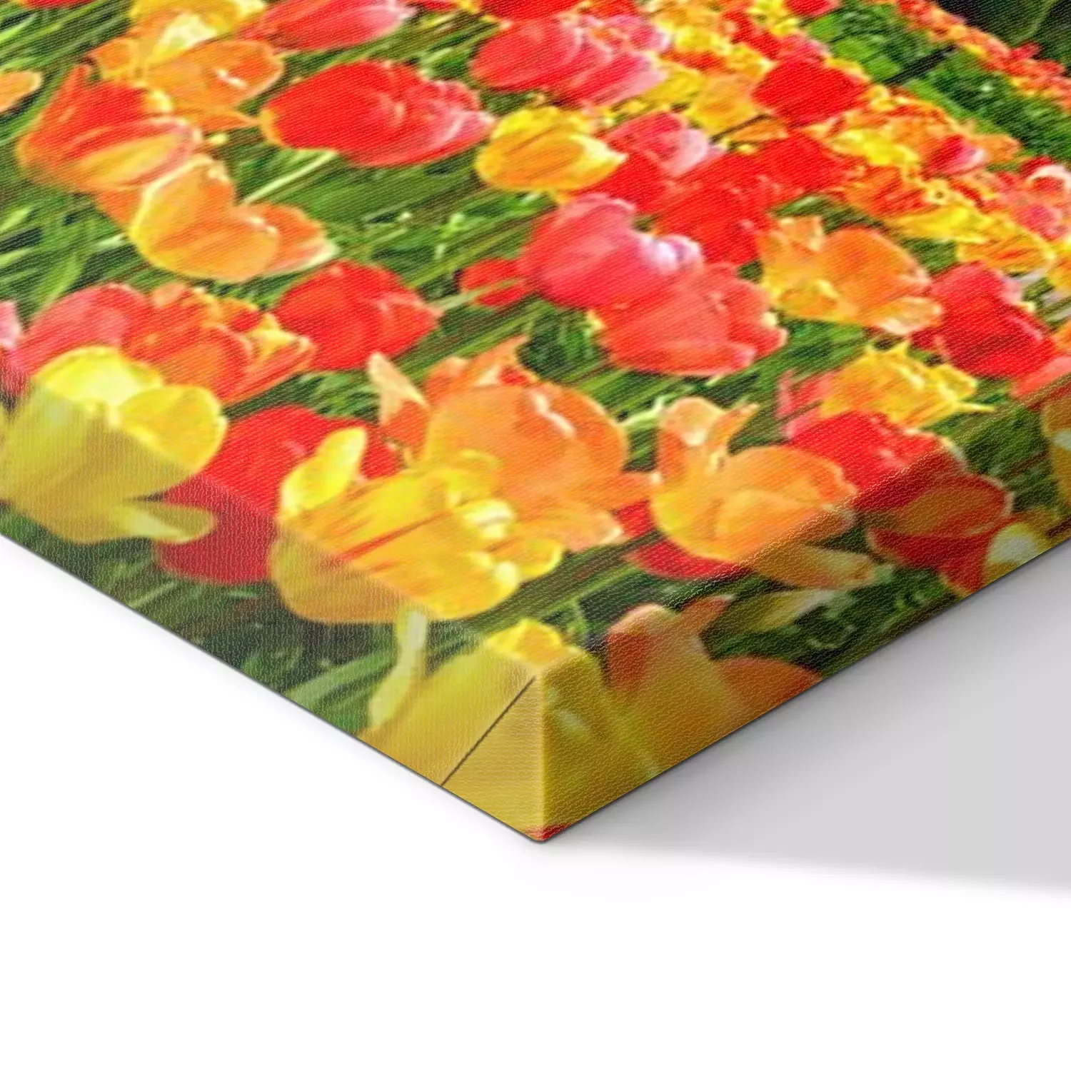 De print wordt aangebracht op hoogwaardig canvas dat op een schildersweefgetouw (spieraam) wordt gespannen. Omdat de print de zijranden bedekt, hoeft het ontwerp niet met een extra kader te worden omlijst. Wij raden ook composities aan die uit meerdere foto's bestaan en zo een coherente compositie vormen.