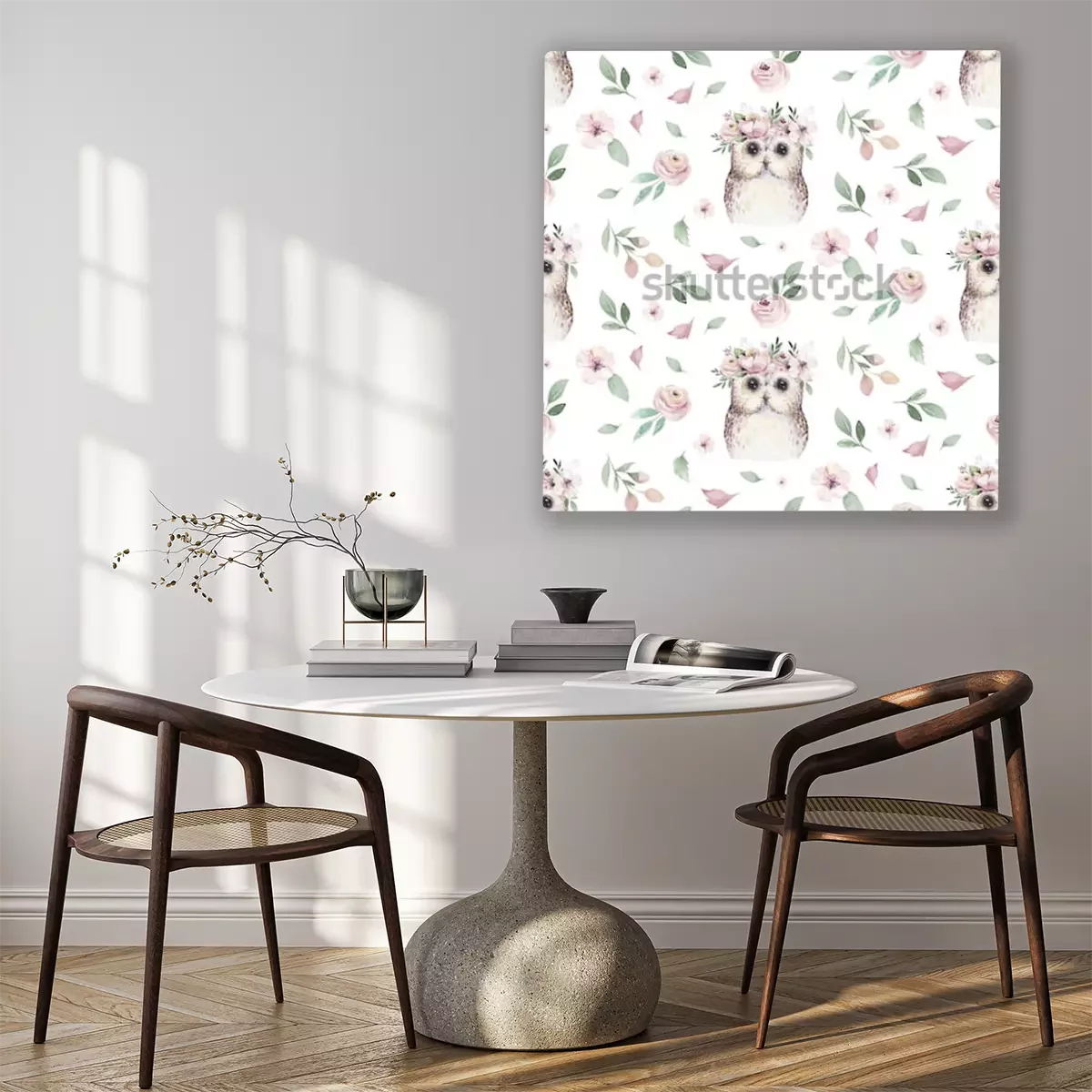 Canvas Bosuilen in kransen