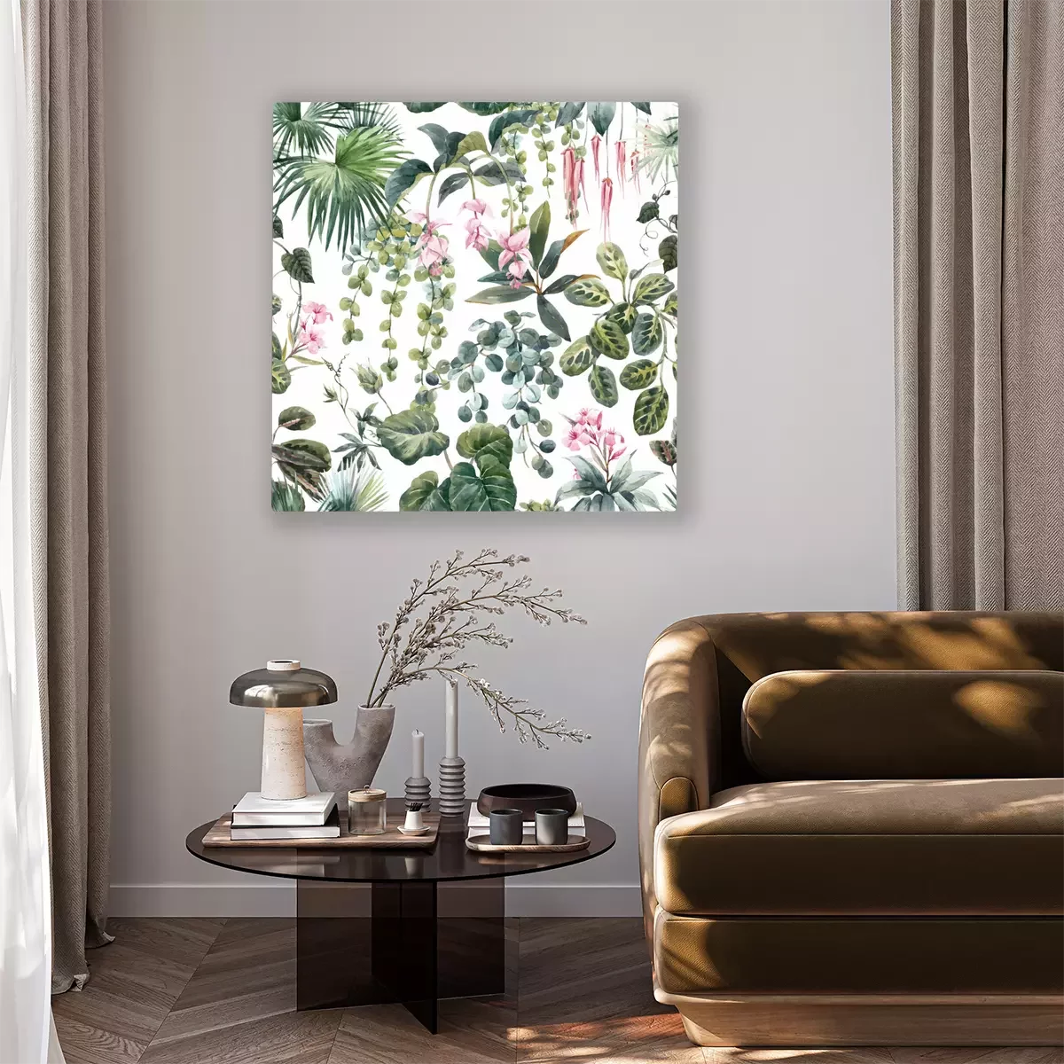 Canvas: Botanische compositie in aquarel op een witte achtergrond