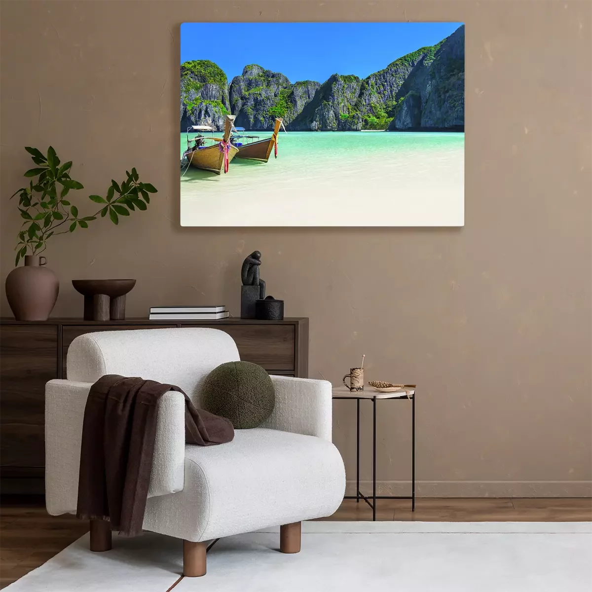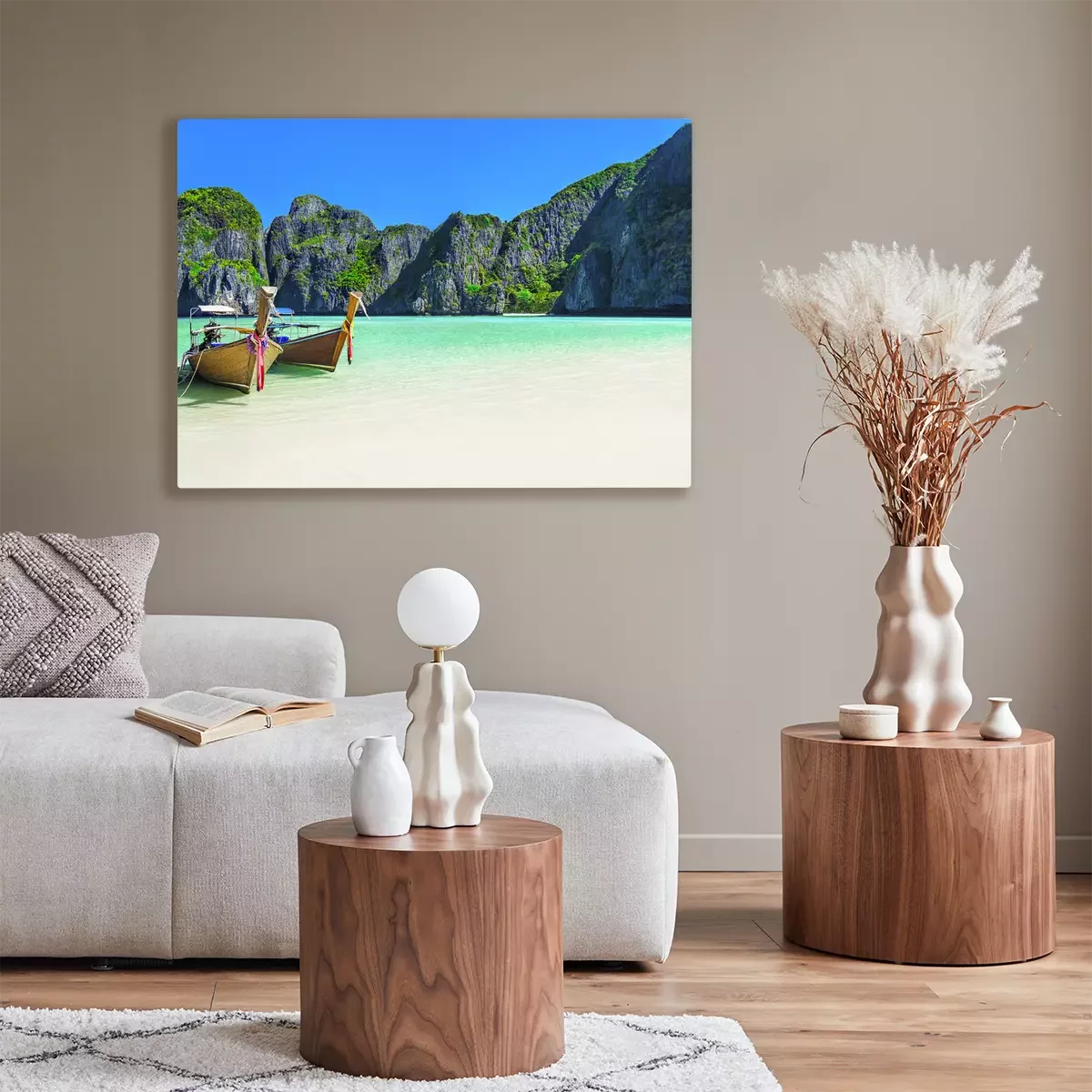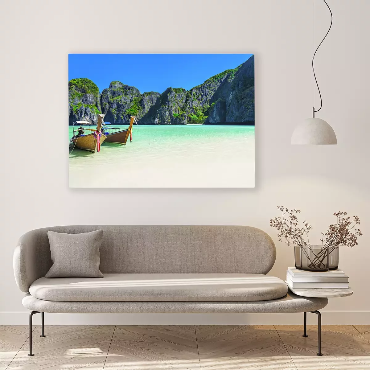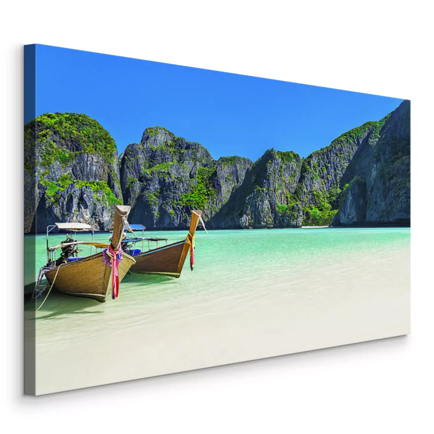 De print wordt aangebracht op hoogwaardig canvas dat op een schildersweefgetouw (spieraam) wordt gespannen. Omdat de print de zijranden bedekt, hoeft het ontwerp niet met een extra kader te worden omlijst. Wij raden ook composities aan die uit meerdere foto's bestaan en zo een coherente compositie vormen.