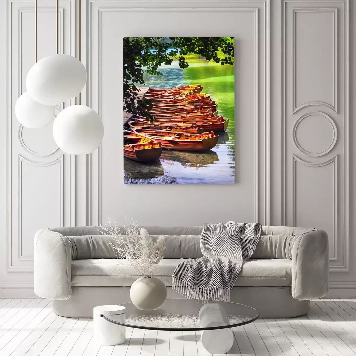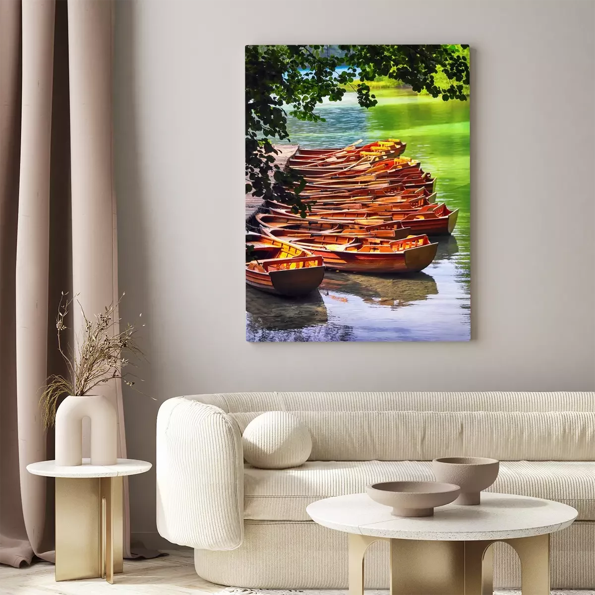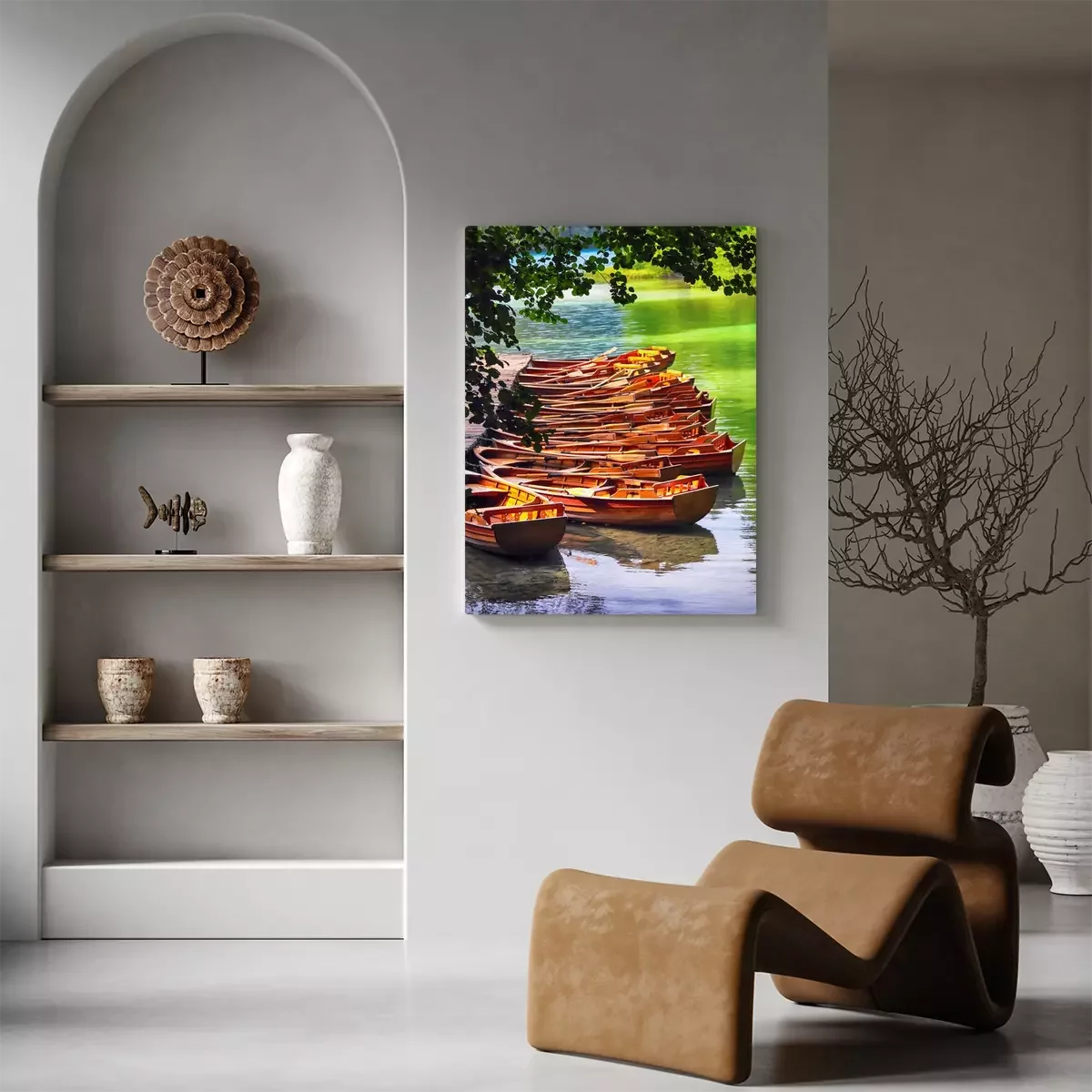 De print wordt aangebracht op hoogwaardig canvas dat op een schildersweefgetouw (spieraam) wordt gespannen. Omdat de print de zijranden bedekt, hoeft het ontwerp niet met een extra kader te worden omlijst. Wij raden ook composities aan die uit meerdere foto's bestaan en zo een coherente compositie vormen.