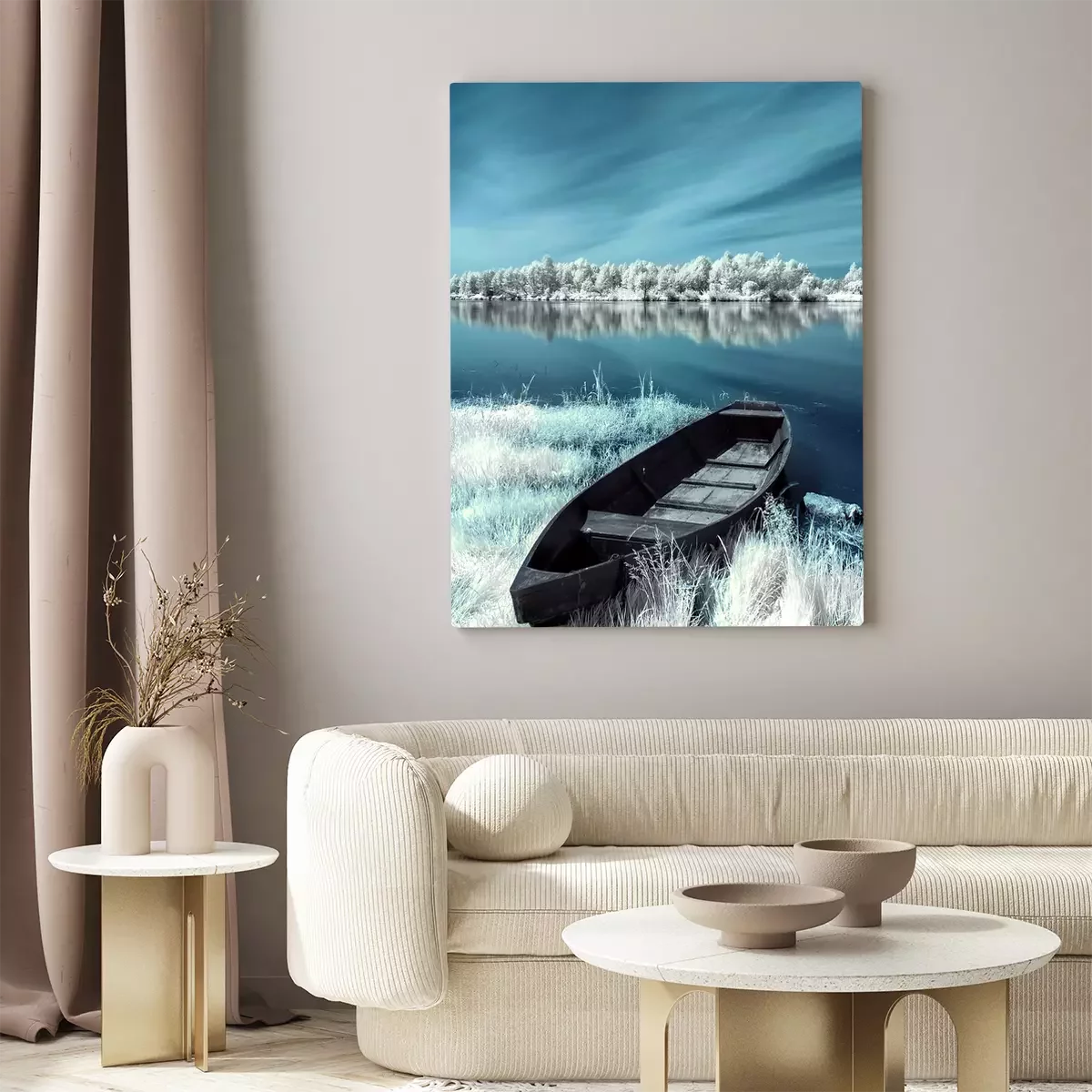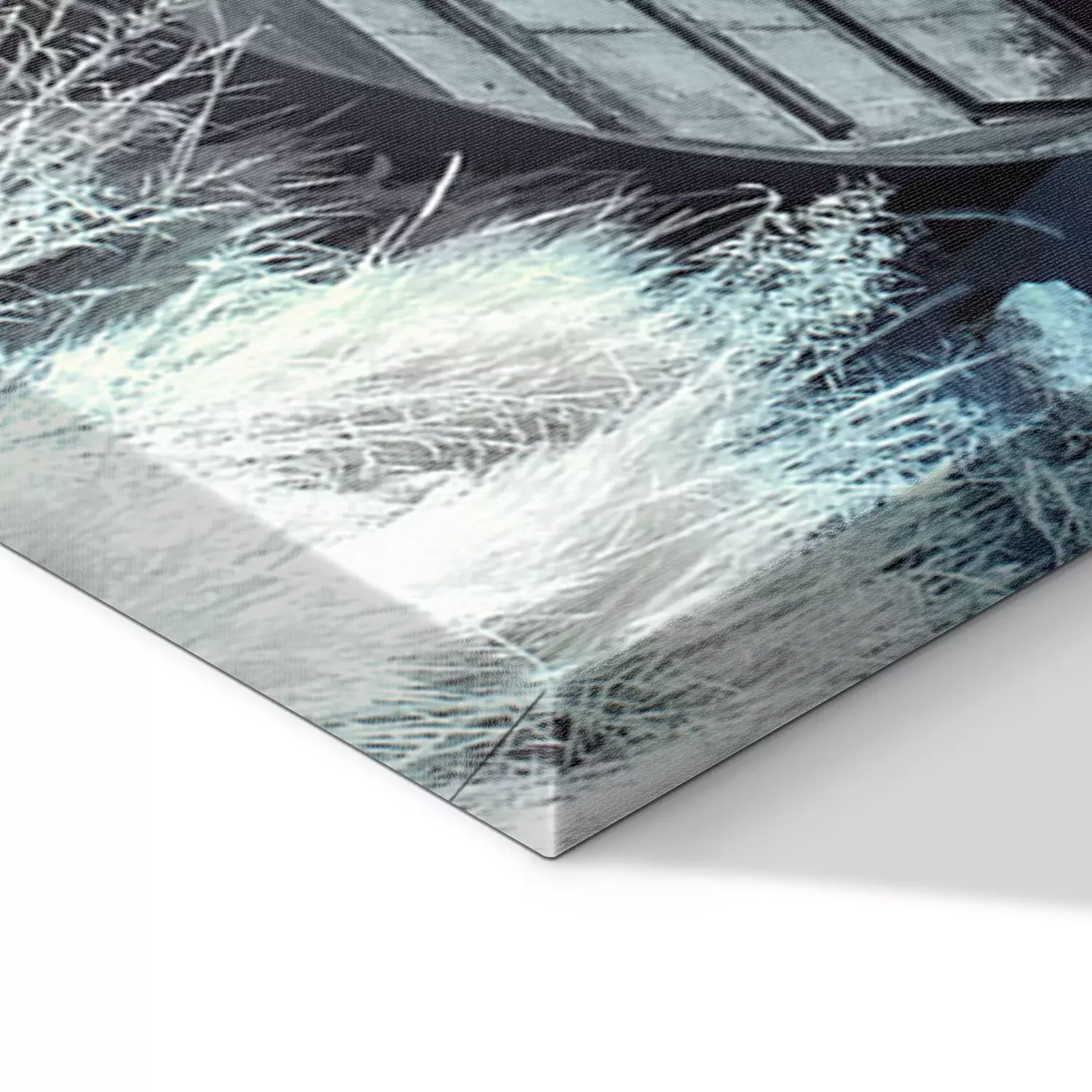 De print wordt aangebracht op hoogwaardig canvas dat op een schildersweefgetouw (spieraam) wordt gespannen. Omdat de print de zijranden bedekt, hoeft het ontwerp niet met een extra kader te worden omlijst. Wij raden ook composities aan die uit meerdere foto's bestaan en zo een coherente compositie vormen.