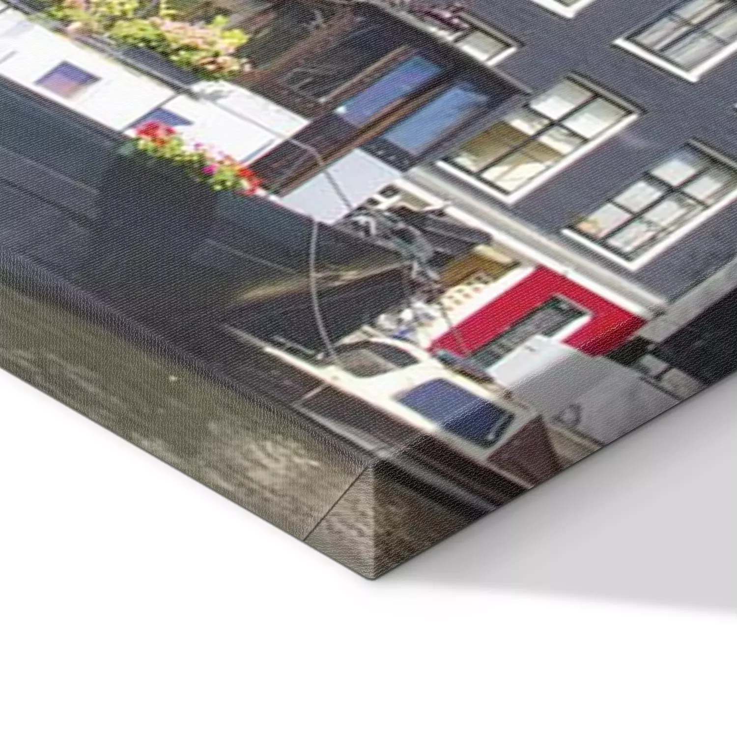 De print wordt aangebracht op hoogwaardig canvas dat op een schildersweefgetouw (spieraam) wordt gespannen. Omdat de print de zijranden bedekt, hoeft het ontwerp niet met een extra kader te worden omlijst. Wij raden ook composities aan die uit meerdere foto's bestaan en zo een coherente compositie vormen.