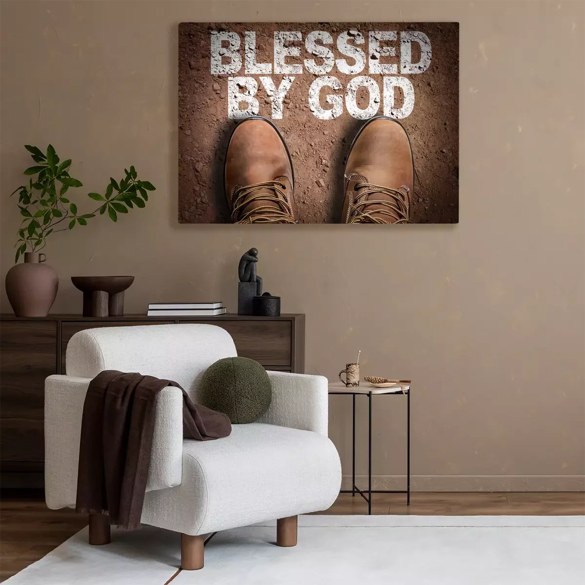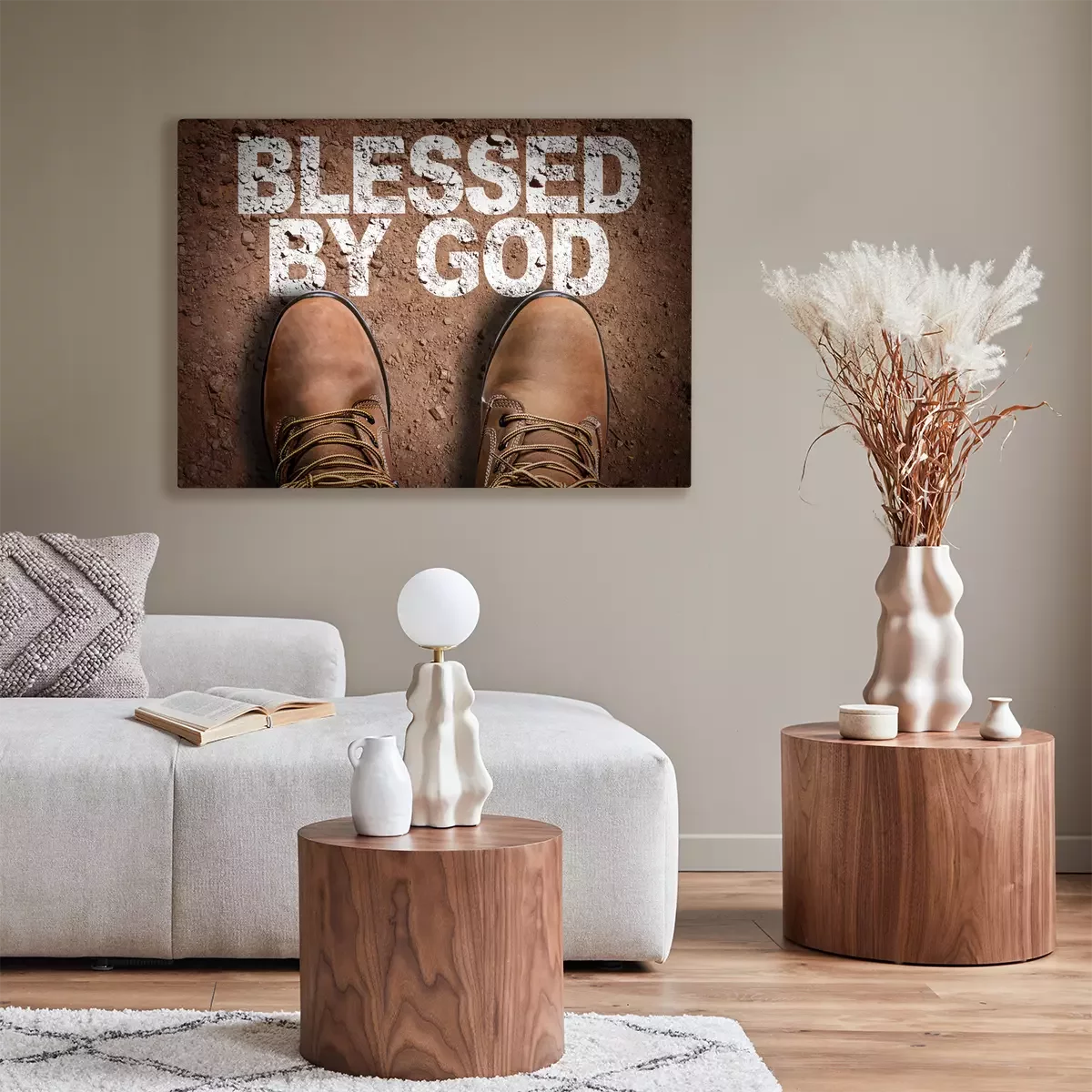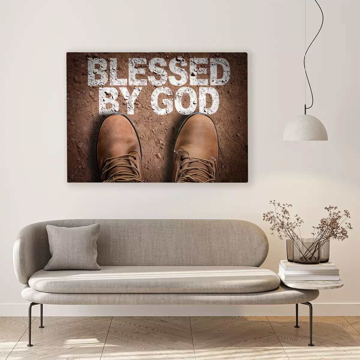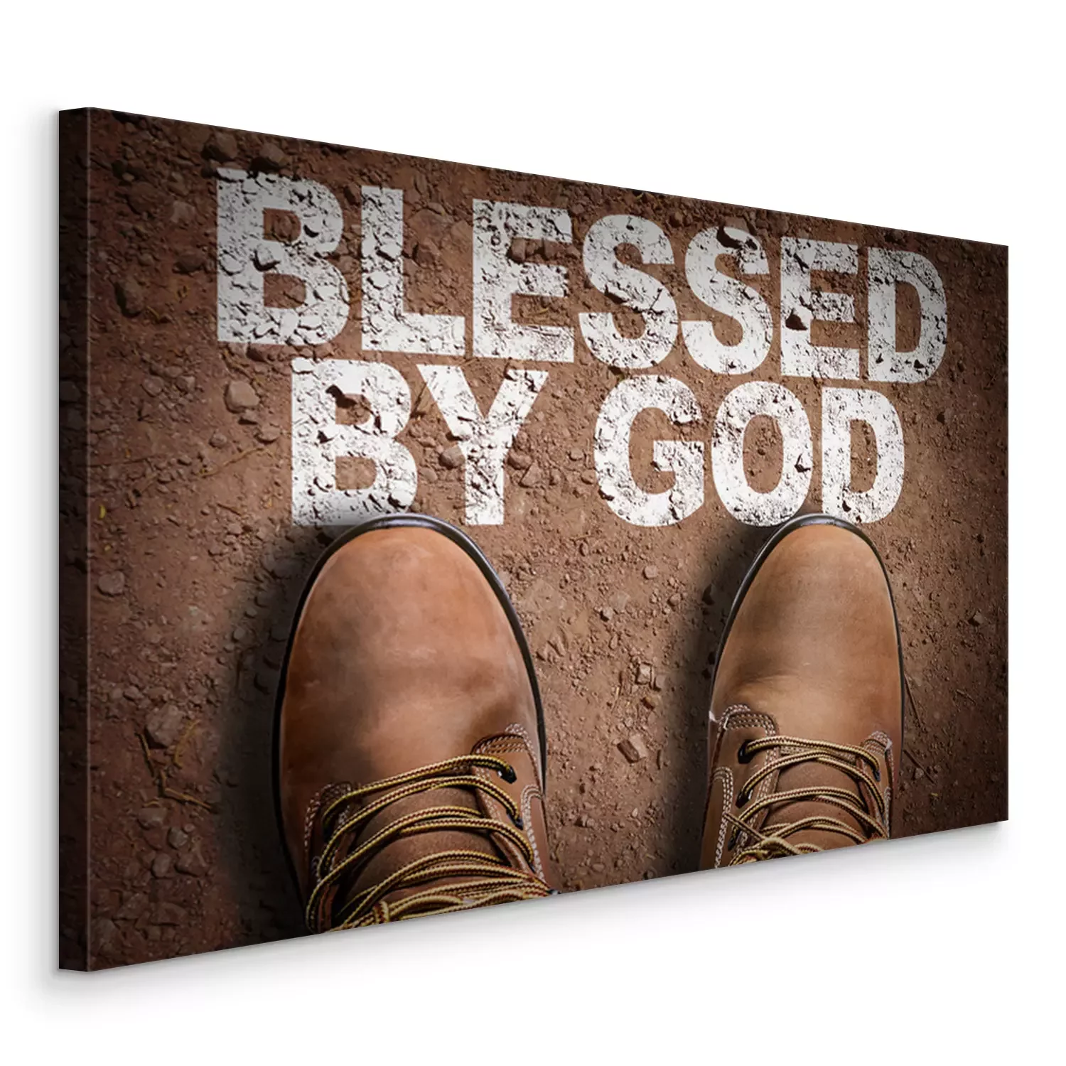 Canvas Bovenaanzicht van Boot op het spoor met de tekst: door God gezegend