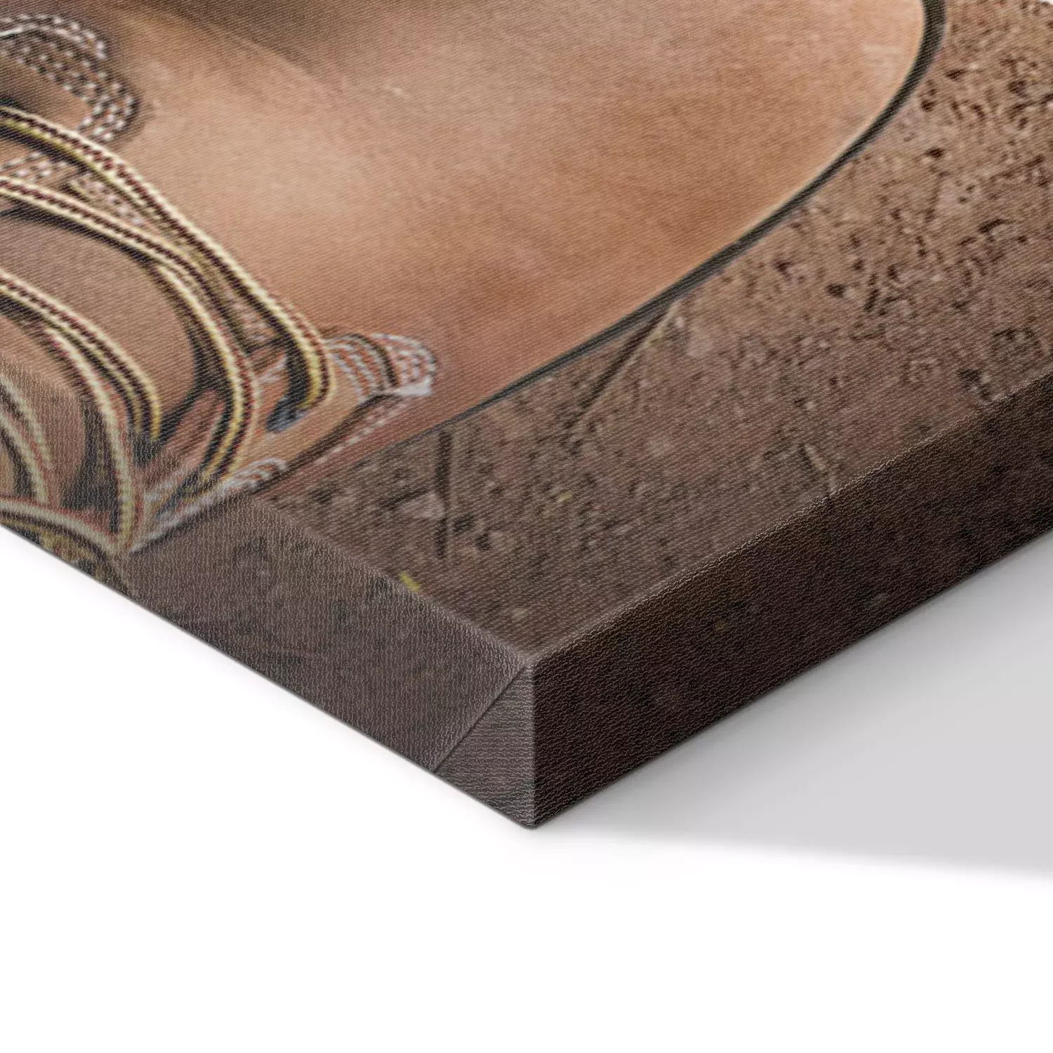 De print wordt aangebracht op hoogwaardig canvas dat op een schildersweefgetouw (spieraam) wordt gespannen. Omdat de print de zijranden bedekt, hoeft het ontwerp niet met een extra kader te worden omlijst. Wij raden ook composities aan die uit meerdere foto's bestaan en zo een coherente compositie vormen.