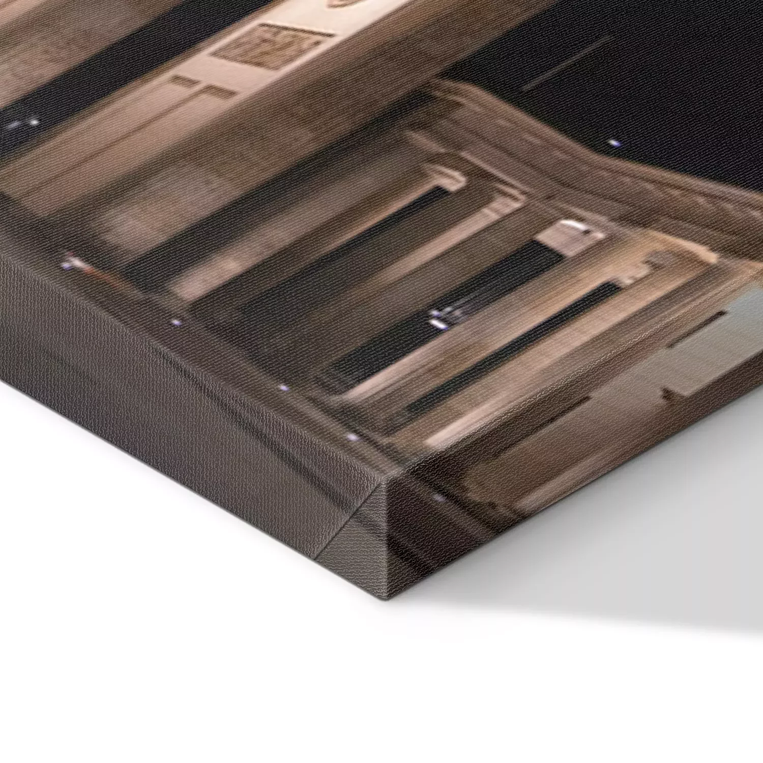 De print wordt aangebracht op hoogwaardig canvas dat op een schildersweefgetouw (spieraam) wordt gespannen. Omdat de print de zijranden bedekt, hoeft het ontwerp niet met een extra kader te worden omlijst. Wij raden ook composities aan die uit meerdere foto's bestaan en zo een coherente compositie vormen.