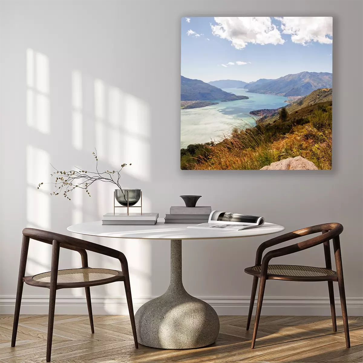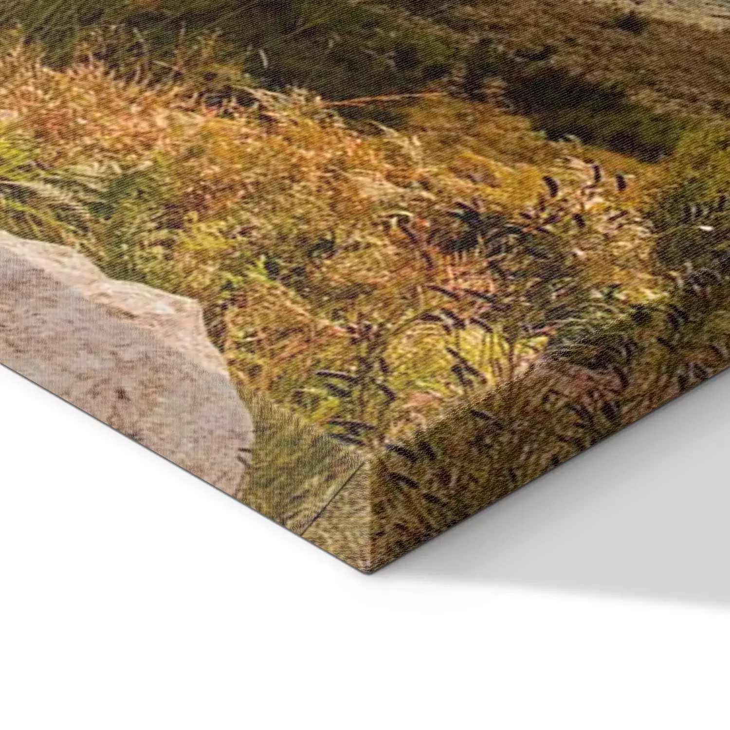 De print wordt aangebracht op hoogwaardig canvas dat op een schildersweefgetouw (spieraam) wordt gespannen. Omdat de print de zijranden bedekt, hoeft het ontwerp niet met een extra kader te worden omlijst. Wij raden ook composities aan die uit meerdere foto's bestaan en zo een coherente compositie vormen.