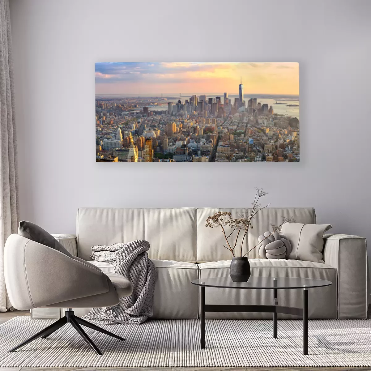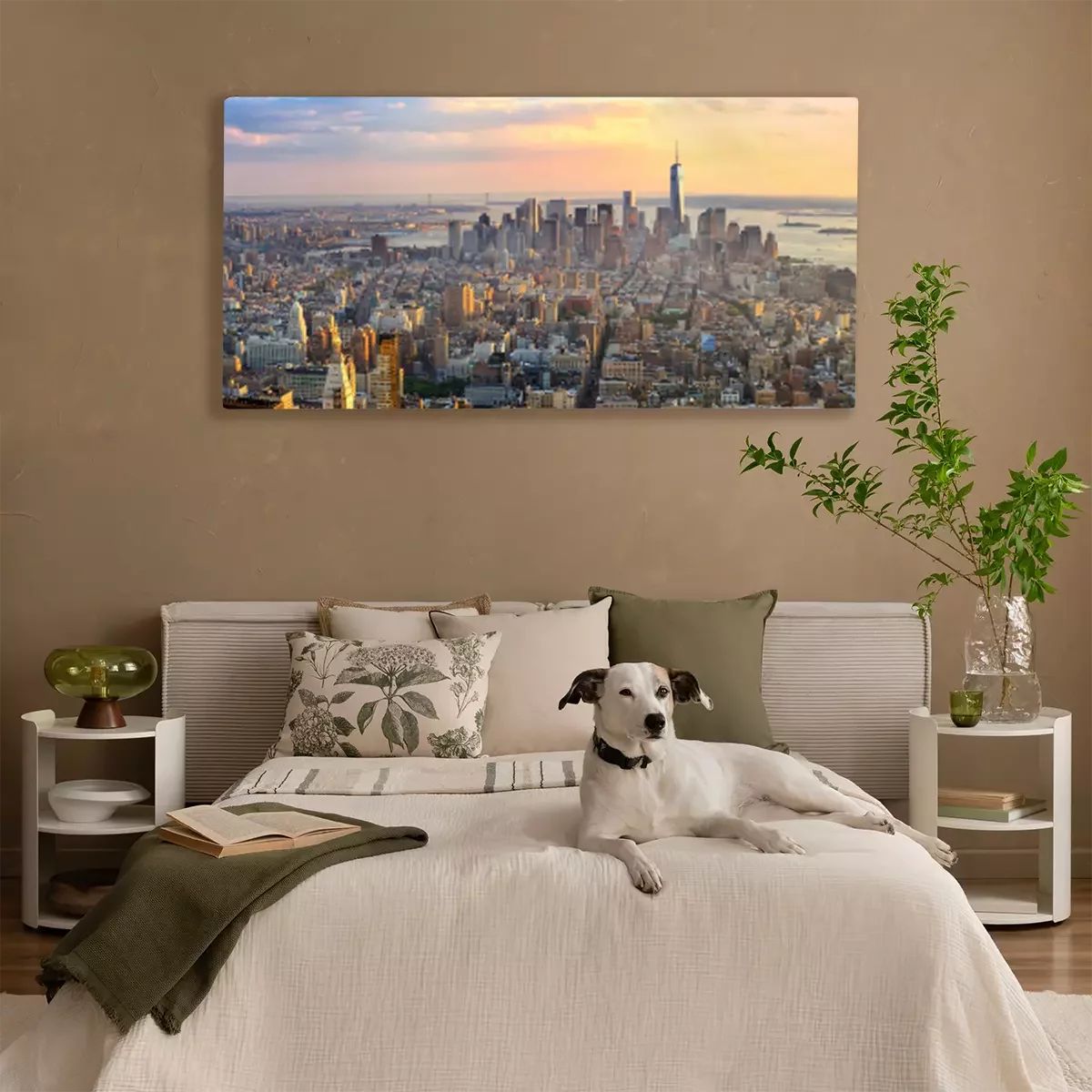 Canvas: Breedbeeldopname met uitzicht op Manhattan