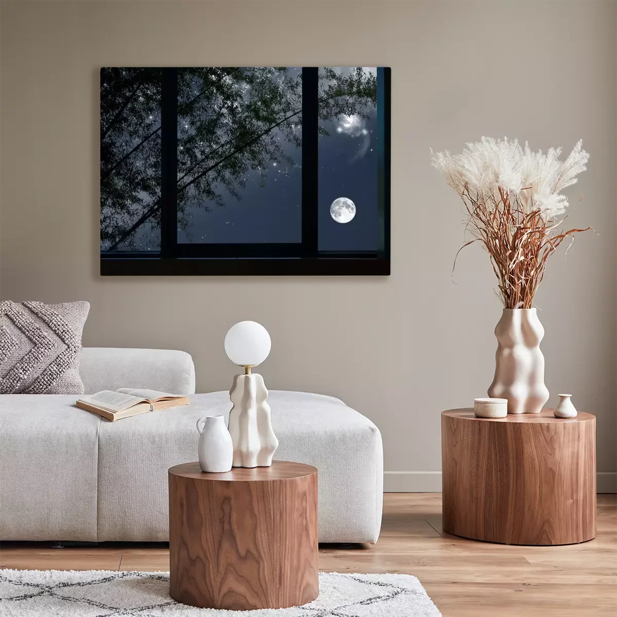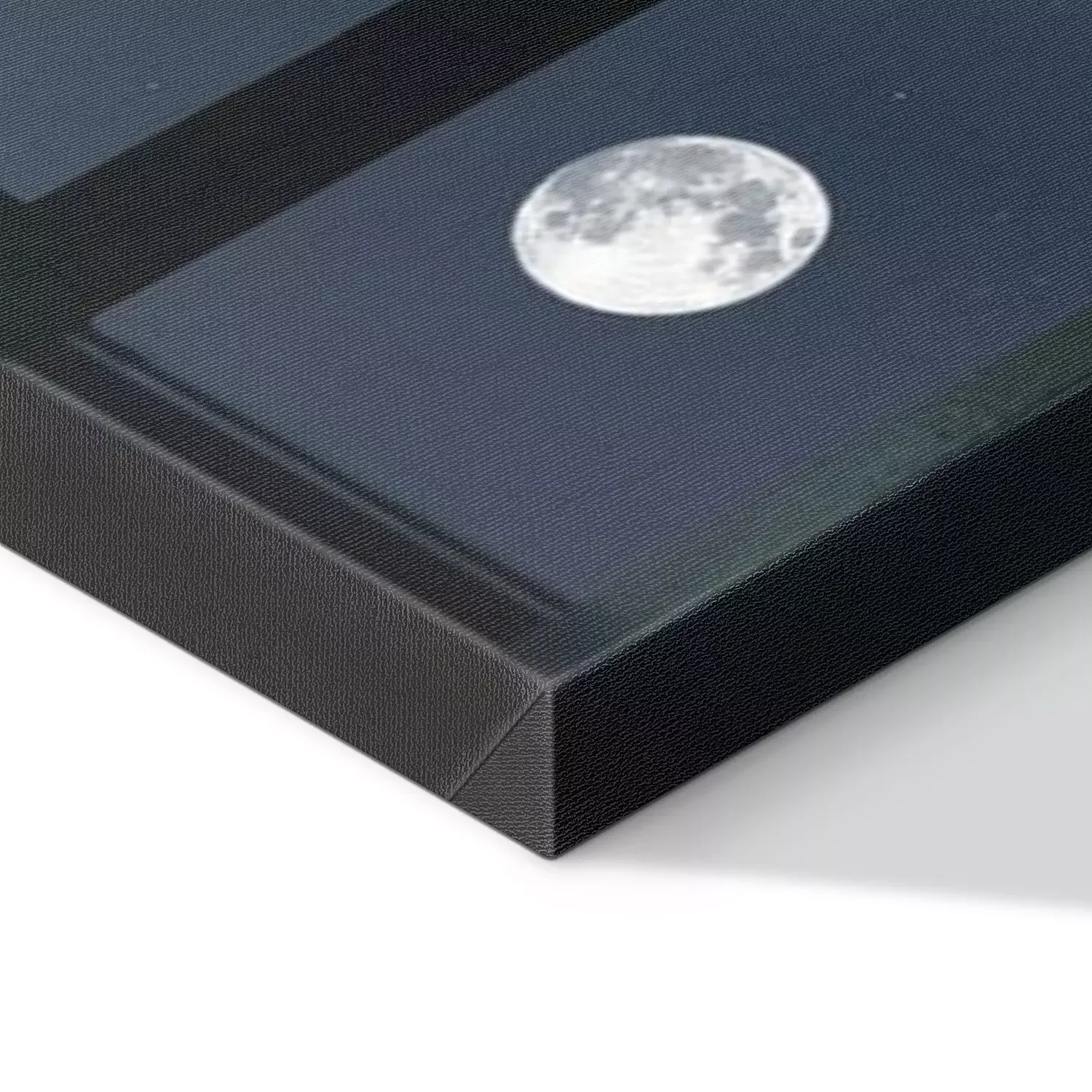 De print wordt aangebracht op hoogwaardig canvas dat op een schildersweefgetouw (spieraam) wordt gespannen. Omdat de print de zijranden bedekt, hoeft het ontwerp niet met een extra kader te worden omlijst. Wij raden ook composities aan die uit meerdere foto's bestaan en zo een coherente compositie vormen.