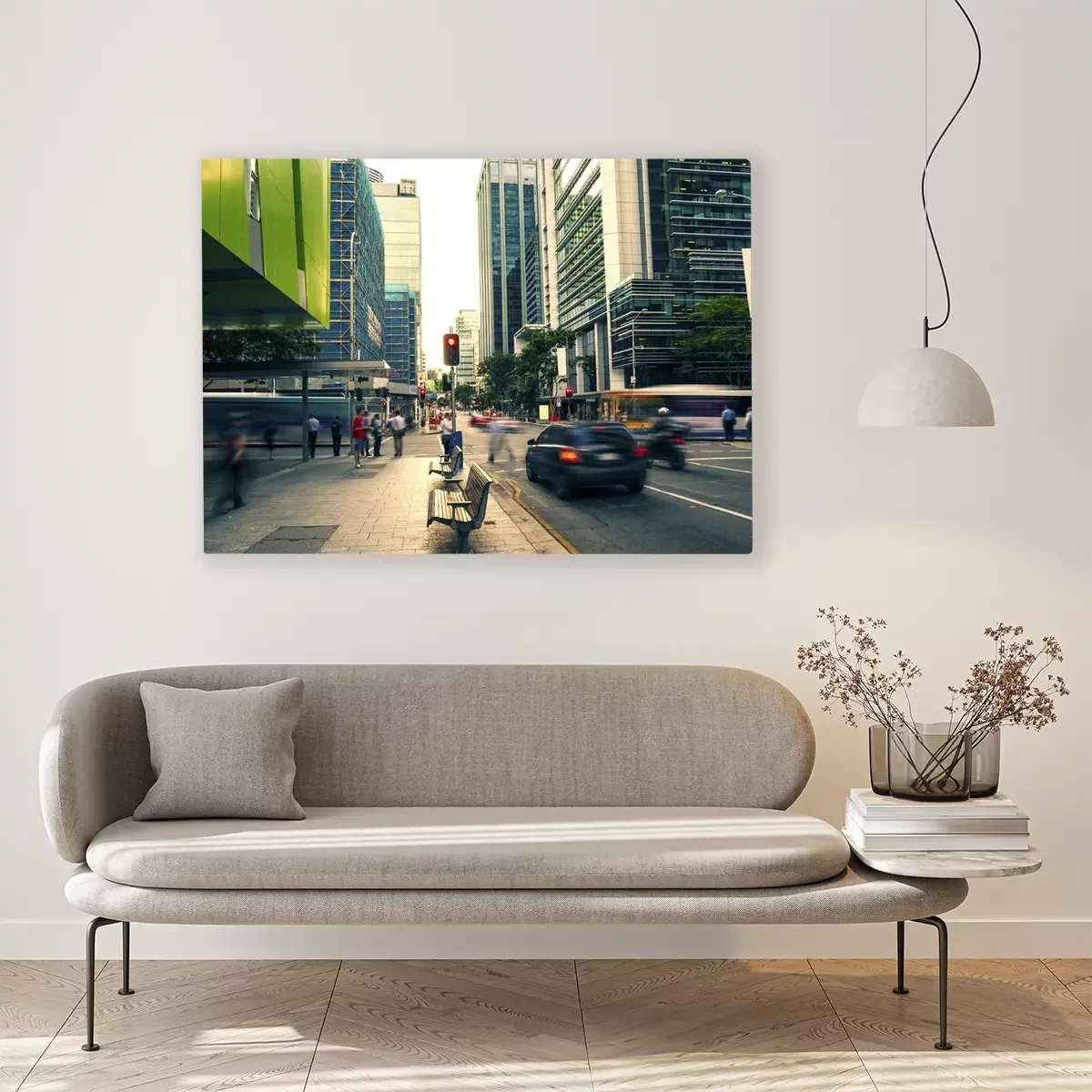 De print wordt aangebracht op hoogwaardig canvas dat op een schildersweefgetouw (spieraam) wordt gespannen. Omdat de print de zijranden bedekt, hoeft het ontwerp niet met een extra kader te worden omlijst. Wij raden ook composities aan die uit meerdere foto's bestaan en zo een coherente compositie vormen.